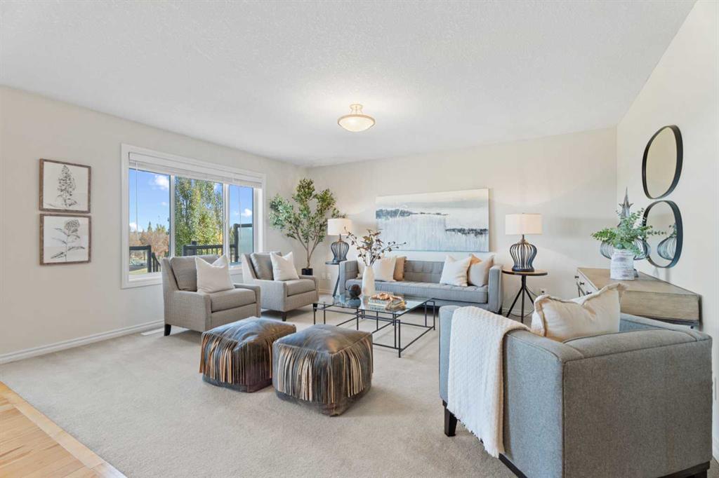 Inside, the home offers an abundance of space and comfort. The main floor features a dedicated office, a laundry room/powder room, and a bright, open kitchen perfect for entertaining. Large windows capture stunning views of north Okotoks and the nearby park and creek bridge. Upstairs are three generous bedrooms, including a primary suite with a 4-piece ensuite, plus another full bathroom. At the top of the stairs, you’ll find a versatile bonus space — perfect for kids to do homework, enjoy quiet reading time, or set up a cozy study nook.