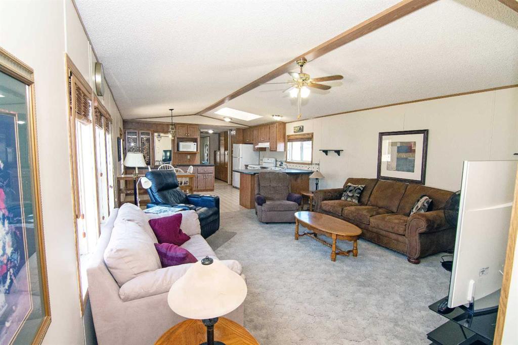 Charming and spacious 3-bedroom, 2-bath Mobile home in a desirable 55+ community! This well-maintained 1991 home offers comfortable single-level living with an inviting open layout. Enjoy a cozy gas wood stove in the living room, and AC unit built-in —perfect for cool or warm evenings—a bright, expansive 3-season bonus room that adds wonderful extra living space, connected to a covered deck. The primary suite features a 4 piece ensuite, two additional bedrooms provide plenty of room for guests, hobbies, or an office. Located in a peaceful 55+, well-kept park close to shopping, dining, and major routes. Affordable, low-maintenance living at its best—come see all this home has to offer!