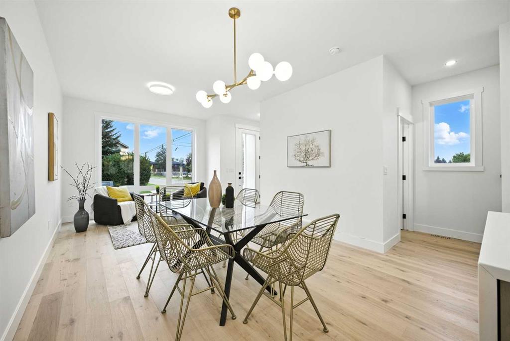 Designed by Tricor Design Group, this newly built residence is a stunning showcase of modern architecture, thoughtful functionality, and timeless style. Perfectly positioned on a coveted corner lot across from the school and surrounded by professional landscaping, this home captures the essence of refined inner-city living. With Confederation Park, the Mount Pleasant Sportsplex, playgrounds, and downtown Calgary just minutes away, you’ll enjoy both convenience and community in one of the city’s most desirable neighborhoods. As you step inside, you’re greeted by an inviting open-concept main floor that perfectly balances warmth and sophistication. Expansive windows flood the space with natural light, while engineered hardwood floors and a sleek gas fireplace with custom built-ins create a welcoming and elevated atmosphere. At the heart of the home lies the chef-inspired kitchen—an entertainer’s dream designed with both beauty and function in mind. Featuring quartz countertops, a striking waterfall island, and premium integrated appliances (including an oversized refrigerator), this kitchen seamlessly combines form and practicality. Custom built-in storage for the pantry keeps the space organized and stylish, while the open flow between the kitchen, dining, and living areas makes entertaining effortless. Oversized sliding doors open to a private backyard retreat complete with a concrete patio, green space, and access to the double detached garage—perfect for summer evenings or weekend gatherings.