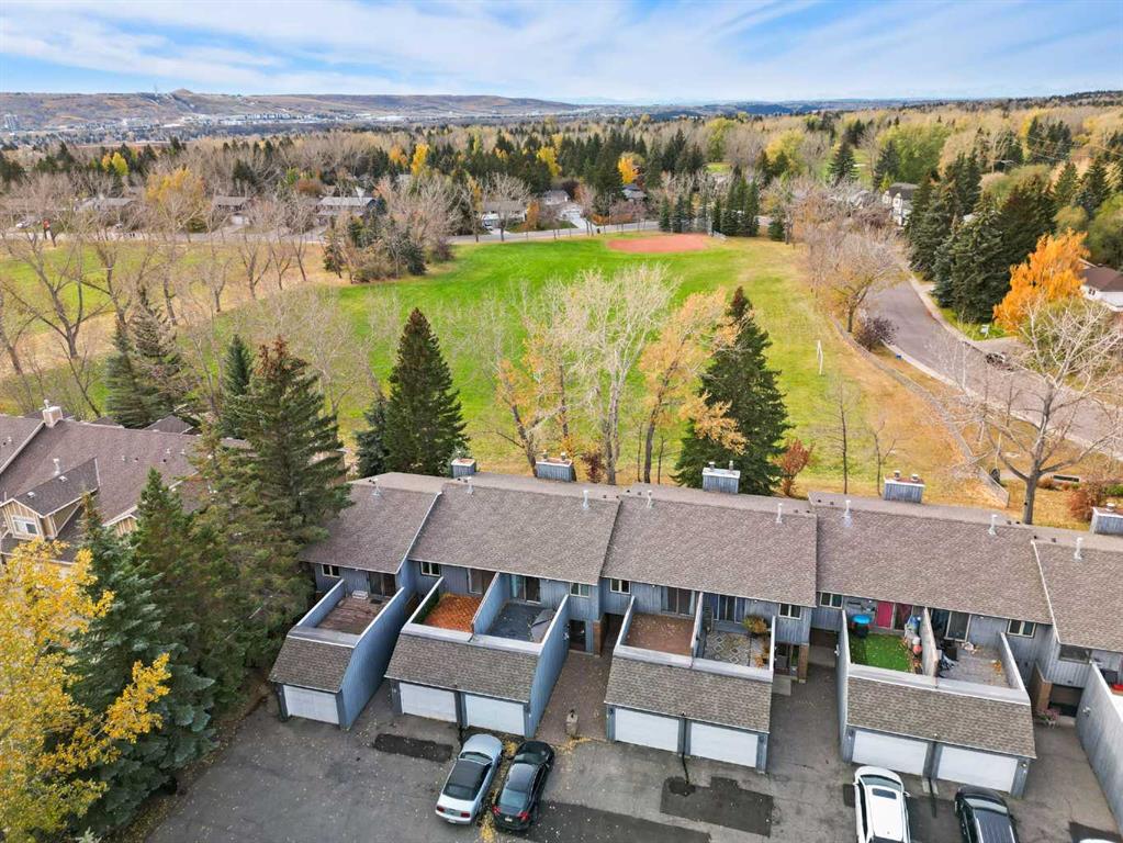 Own in sought-after Varsity Estates! This 3-bedroom, 1.5-bath townhome backs directly onto green space with no neighbours behind. The main floor offers a bright living room with a wood-burning brick fireplace and a functional kitchen with stainless steel appliances, including a gas stove. Upstairs features a spacious primary bedroom with vanity and cheater ensuite access, plus two additional bedrooms, one with rooftop patio access. The basement is partially finished, providing ample storage and future development potential. Includes a single attached garage, parking for two on the driveway, and low $200/month condo fees in a self-managed complex. Prime location near Market Mall, U of C, LRT, Foothills & Children’s Hospitals, parks, and pathways.