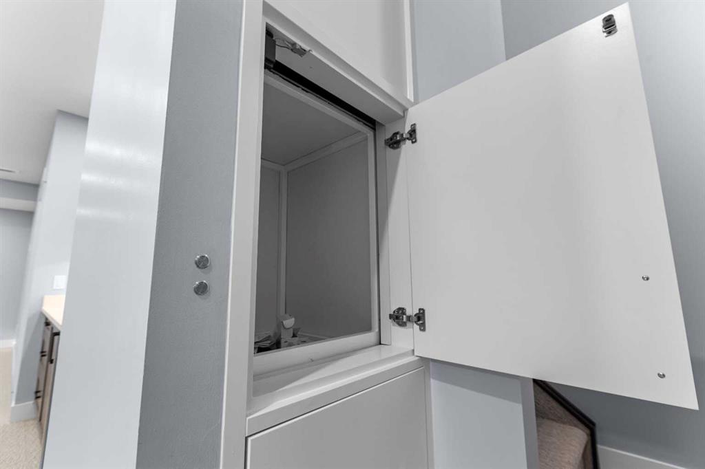 Throughout the home, every element has been curated to achieve a seamless blend of luxury and function. QUARTZ countertops, shaker-style cabinetry with under-cabinet lighting, soft-close drawers/cupboards, and black and gold Tenzo fixtures elevate every space. The gourmet kitchen serves as the centerpiece, featuring a fireclay farmhouse sink, built-in spice racks, and a large island with concealed electrical outlets. A discreet dumbwaiter elevator connects the garage and lower level directly to the kitchen, adding effortless practicality to everyday living.