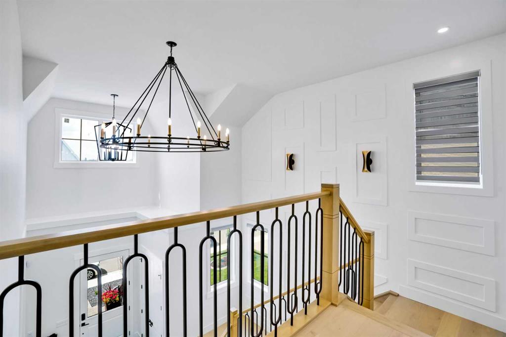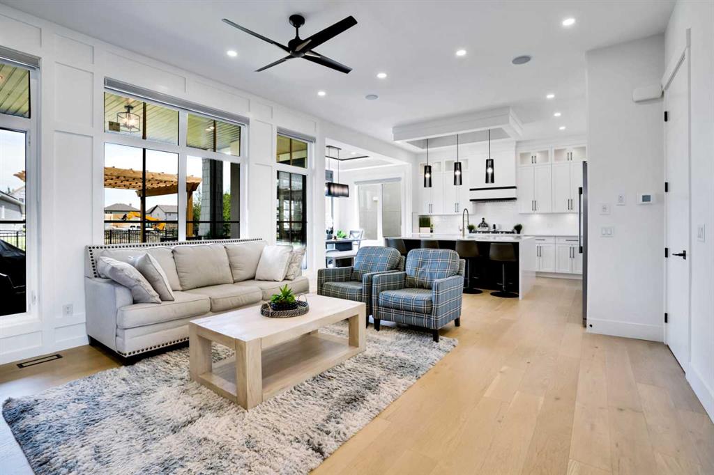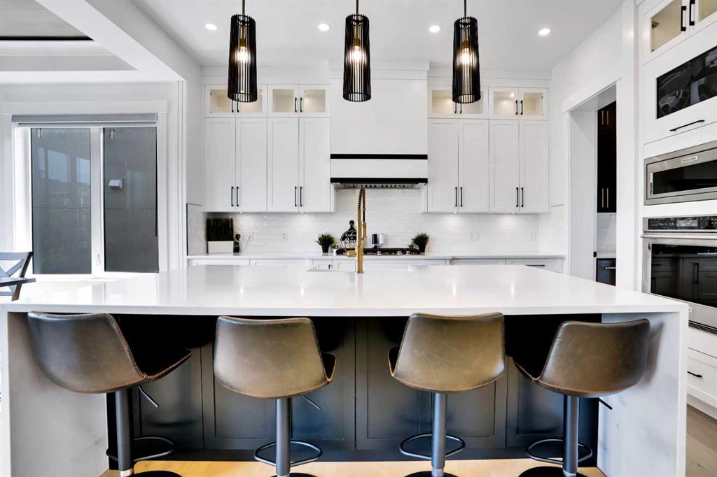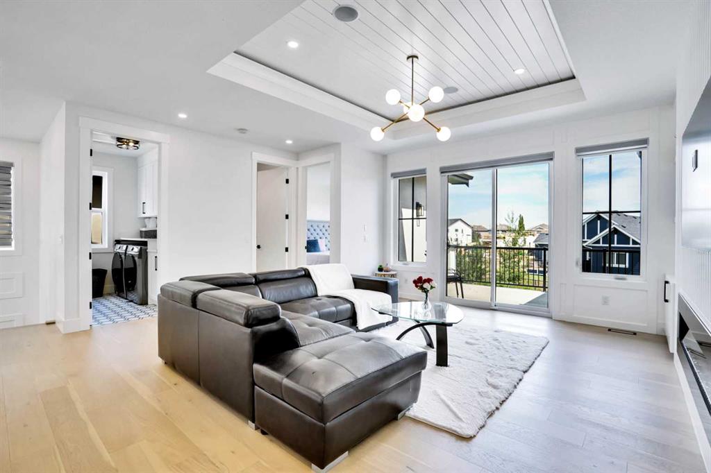 Welcome to Luxury Living in the Desirable Community of Coopers Crossing! This stunning luxury estate home offers over 4,100 square feet of living space in the sought-after community of Coopers Crossing in Airdrie. Upon entering this beautiful home, you\'ll be greeted by a grand foyer with vaulted ceilings leading to the upper floor. The main floor of the home features 10-foot ceilings and a versatile office space that can be used as a bedroom. A full bathroom is also located on the main floor. The open-concept layout boasts a cozy family room with a gas fireplace and custom feature wall, a formal dining room with coffered ceilings and custom feature walls, and a dream chef\'s kitchen with a waterfall island and seating area. High-end Kitchen-Aid appliances, built-in oven, gas range, and a large built-in refrigerator are the highlights of this beautiful kitchen. The kitchen area also features a spice kitchen/pantry with a gas range and refrigerator. The entrance from the triple garage that has epoxy floors leads you to your large mudroom with storage for your coats and shoes. The upper floor features 9-foot ceilings, a large chandelier, and a feature wall leading to 4 bedrooms and 3 full bathrooms, including a primary suite with a large walk-in closet. The upper floor also features a large laundry room with a sink. A spacious bonus room with sliding doors leading to the upper balcony completes the upper floor. The fully finished basement has 9-foot ceilings, a built-in custom wet bar with a sink, microwave, and bar fridge, leading to a rec room with a feature wall wired in for a projector setup and surround sound. An additional bedroom and a 4-piece washroom complete the basement. The exterior is now landscaped and wired with custom gemstone lighting that can be used year-round, security system with cameras, and a large lot backing onto a green space walkway, the garage is also wired for an electric car charger. This home is designed and built with many upgrades, including engineered hardwood, custom railing, tile, feature walls, A/C and built-in closets. You don\'t want to miss the opportunity to own this dream home. Check our the 3D Tour and Schedule your showing today!