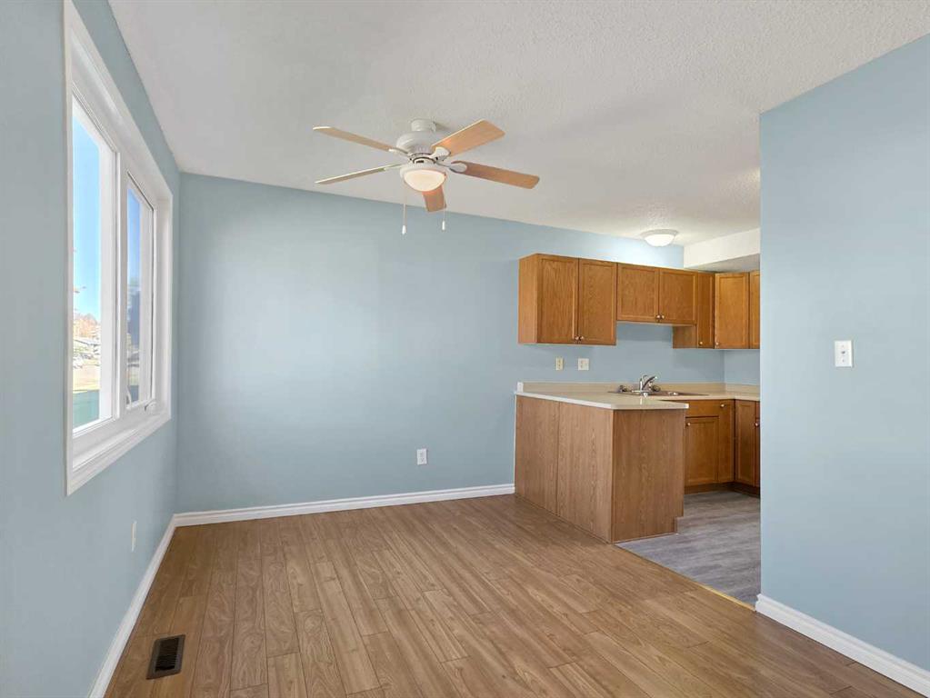 Move-in ready townhouse on 97 Ave with a functional layout and plenty of natural light. The main floor offers an easy flow between the kitchen, dining, and living area—perfect for everyday living or having friends over. Upstairs has three comfortable bedrooms (Including a very large primary bedroom) and a full bathroom, giving you space for family, guests, or a home office. The basement is clean and open with laundry, storage, and walk-out access to the fenced backyard. Parking is conveniently located out back, and the condo takes care of snow removal and lawn maintenance out front. An affordable and practical option for anyone looking to settle into life in beautiful Grande Cache.