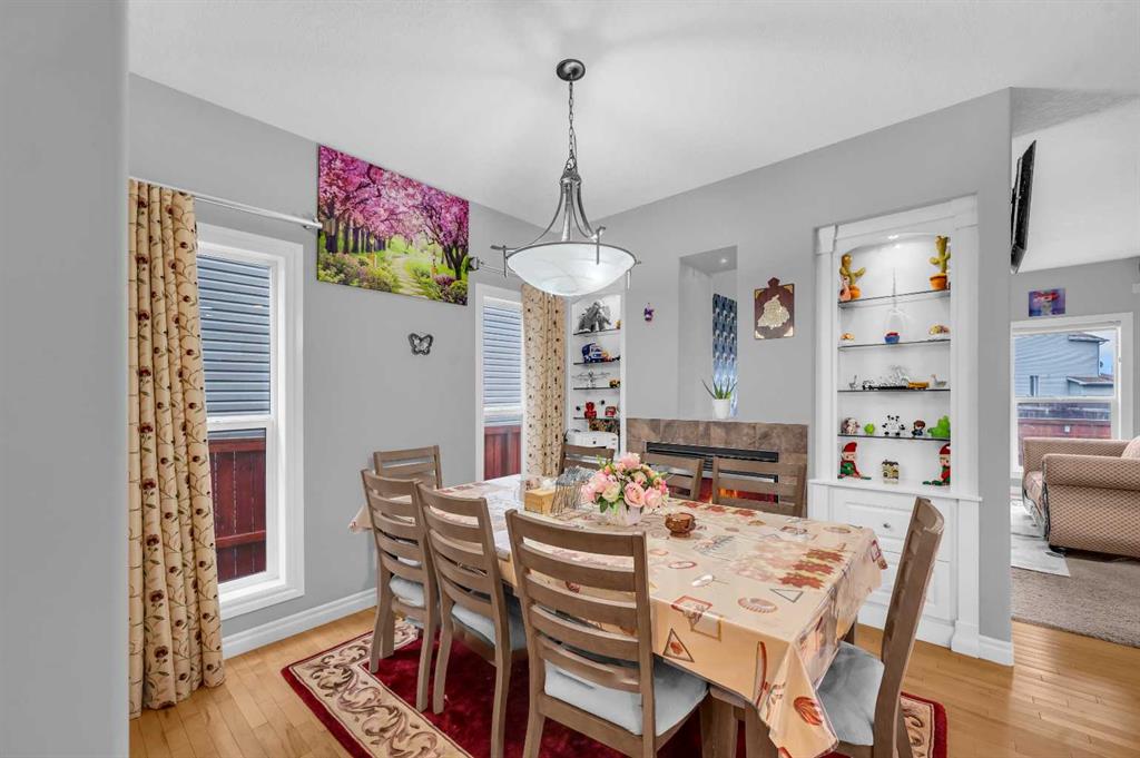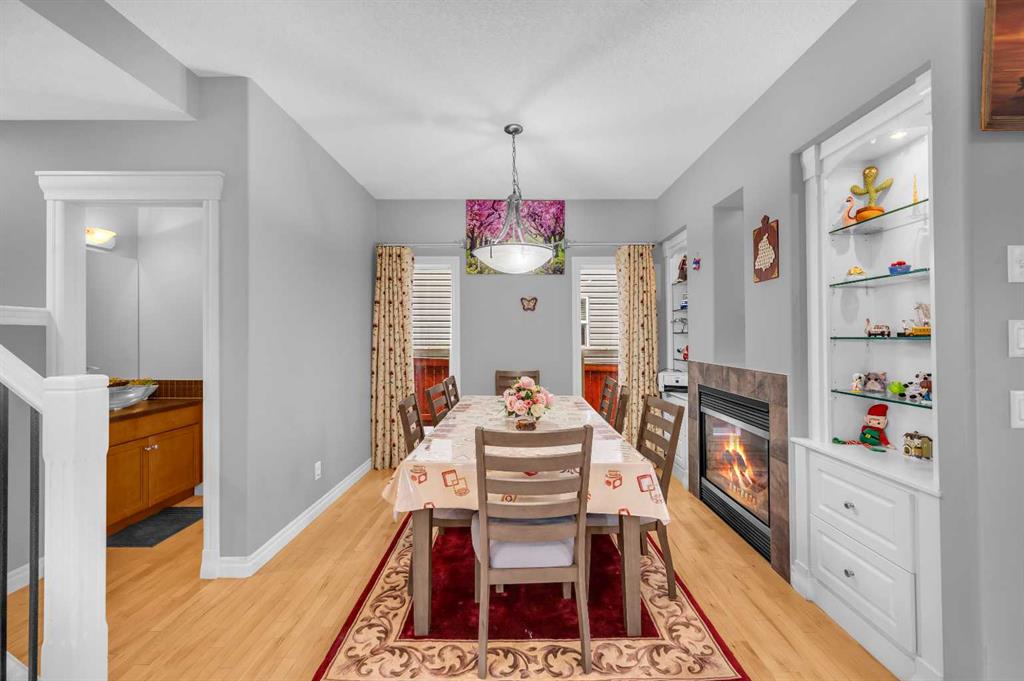 Beautifully upgraded two-storey front garage home in the heart of Coventry Hills, offering the perfect blend of style, comfort, and practicality. The main floor features 9-foot knockdown ceilings, rich hardwood flooring, and a welcoming entry with a front closet and decorative niche. The open-concept layout flows seamlessly through a bright living area with two large windows, a cozy natural gas fireplace in the dining area with built-in shelving, and a stylish kitchen complete with maple cabinetry, granite countertops, stainless steel appliances including a double-door fridge with water line, a pantry, and a sunny south-facing window. A convenient half-bath and a separate laundry room with upgraded washer and dryer complete the main level. Upstairs, the elegant railing with metal spindles leads to a spacious bonus room with vaulted ceilings, pot lights, and large windows—an ideal space for family relaxation. The primary bedroom offers a generous layout with a walk-in closet and a luxurious ensuite featuring double sinks, a jetted tub, a standing shower, tile flooring, and pot lighting. Two additional bedrooms upstairs are bright and roomy, complemented by a full main bathroom. The finished basement expands the living space with a large recreation area and an extra bedroom—perfect for guests, teens, or a home office. The large south-facing backyard features a maintenance-free deck with glass railing and convenient back-alley access, making it perfect for RV parking without sacrificing yard space. Ideally located within walking distance to several elementary schools, a public middle school, parks, and green spaces—plus just minutes to Notre Dame High School, Vivo Rec Centre, Country Hills Town Centre, and Coventry Hills Centre for all your shopping and dining needs. Enjoy easy access to Stoney Trail, public transportation, and the airport—making this upgraded, move-in-ready home the perfect combination of comfort, convenience, and community living.