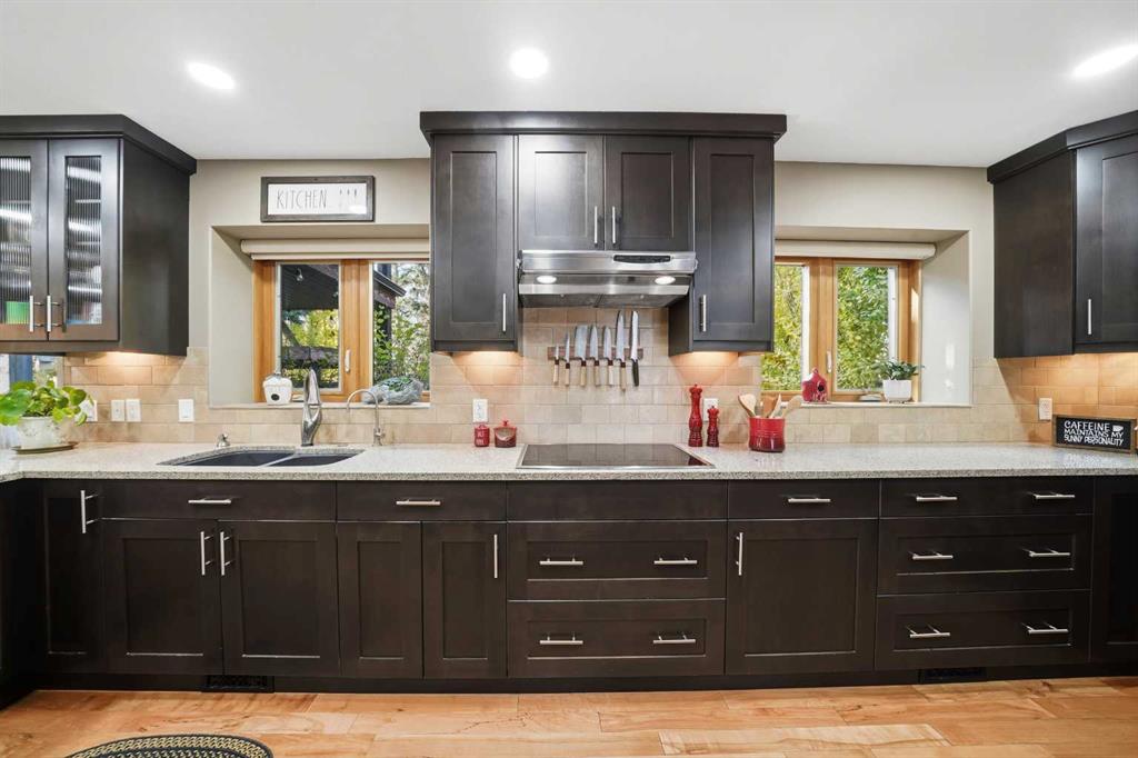 Immaculate 1 1/2 storey in the sought-after Mountview area. Close to schools and the Waskasoo recreation & trail system. This home offers luxury modern amenities and privacy. Fully developed with a gorgeous kitchen with plenty of alder cabinets, quartz countertops, eating bar, wall oven, built-in cooktop and stainless steel appliances. Dining area is a large size, big enough to fit a family-size table and a gas fireplace with a rustic log mantle & custom bookshelves on both sides & patio doors to a covered deck for outdoor cooking, a lower patio space and a pergola that surrounds the hot tub. Custom shed with lots of storage. This is all surrounded by numerous mature trees and beautiful outdoor lighting, custom concrete work in the private front patio area and back has been updated as well. Main floor laundry with cupboards and coat hooks/ cubbies for extra storage. Another 2pc bathroom is on the main floor. The updates continue throughout the home. Upstairs has 2 large bedrooms with walk-in closets and custom shelving, a 4pc bath with heated tile floor & quartz counters with a soaker tub. The primary bedroom is king sized with garden doors to its private maintenance-free deck, a walk in closet, spa-like ensuite with custom tiled shower, sun tunnel for extra natural lighting, a built-in armoire closet, dual vanities & heated tile floor. The basement is fully developed with a large family room with surround sound & a gas fireplace, a workout room , and a 3pc bath with heated tile floor. More upgrades include, heated garage with storage cupboards, HE furnace & hot water tank, Pure Air Purification System, solid wood doors, custom window coverings (including remote control), Gemstone lighting, new maintenance-free eavestroughs, Hardie Board siding, beautiful stone work and a custom wrought iron gate in the front. A Must See !
