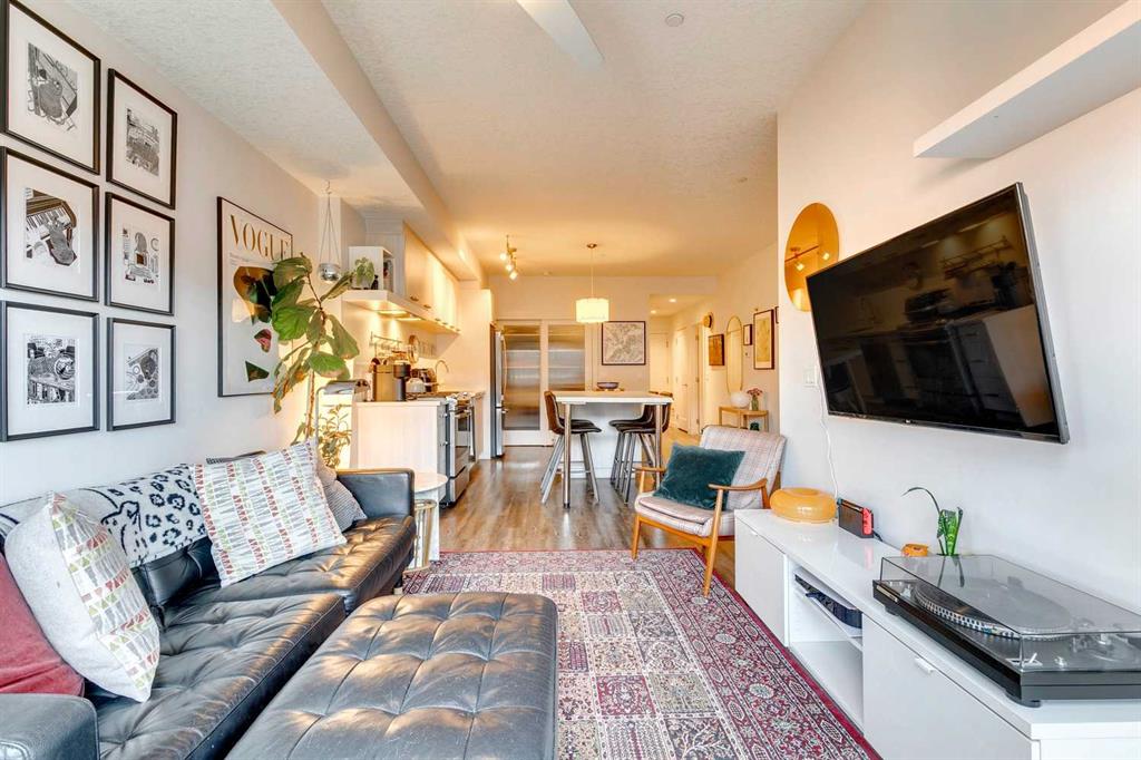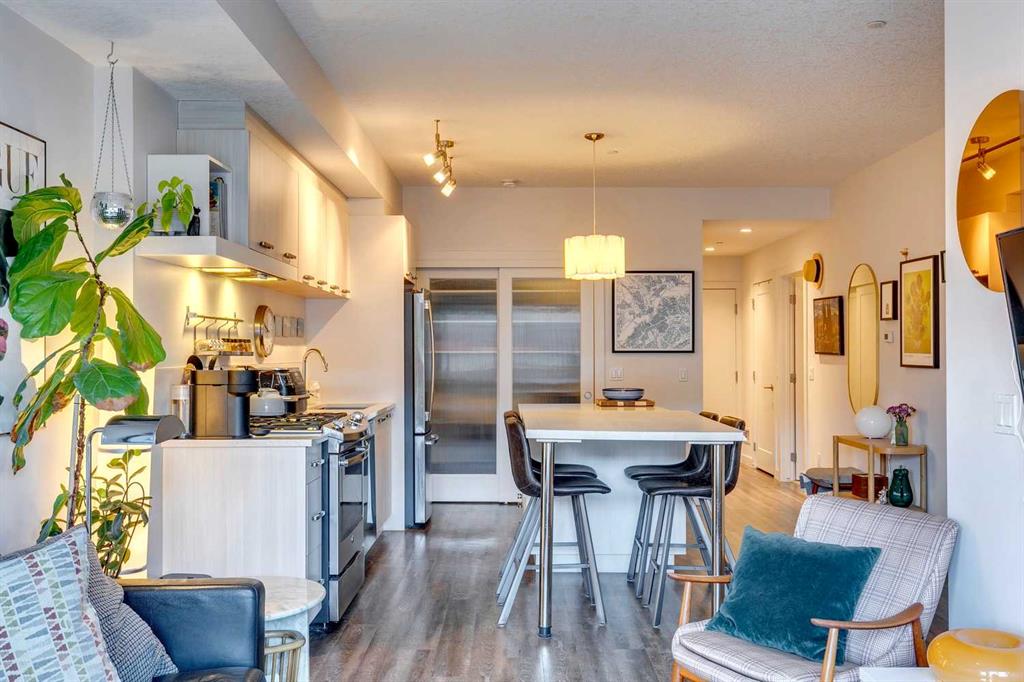 This modern 1 bedroom plus flex room, 2 full bath condo in the LiFFT building is located across from a park in the established community of Renfrew. The open plan presents vinyl plank flooring & high ceilings, showcasing the kitchen that’s tastefully finished with quartz counter tops, island with eating area, plenty of storage space & stainless steel appliances. A spacious living room has access to the sunny south facing balcony. The primary bedroom boasts a walk-through closet to a private 3 piece ensuite & the flex room can be used as a den, bedroom, music room, second sitting area or whatever your heart is content with! Other notable features include a second full bath for guests, in-suite laundry, one assigned underground parking stall & an assigned storage locker. The location is incredibly convenient, across from a park & close to historic Bridgeland shops, restaurants & cafes, schools, public transit & a quick commute to downtown via Edmonton Trail.
