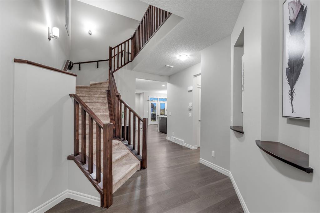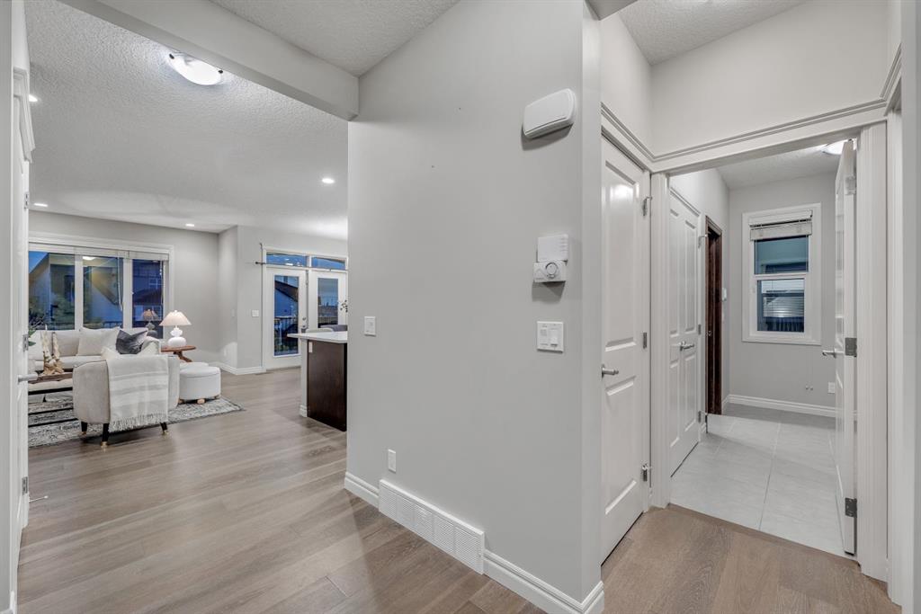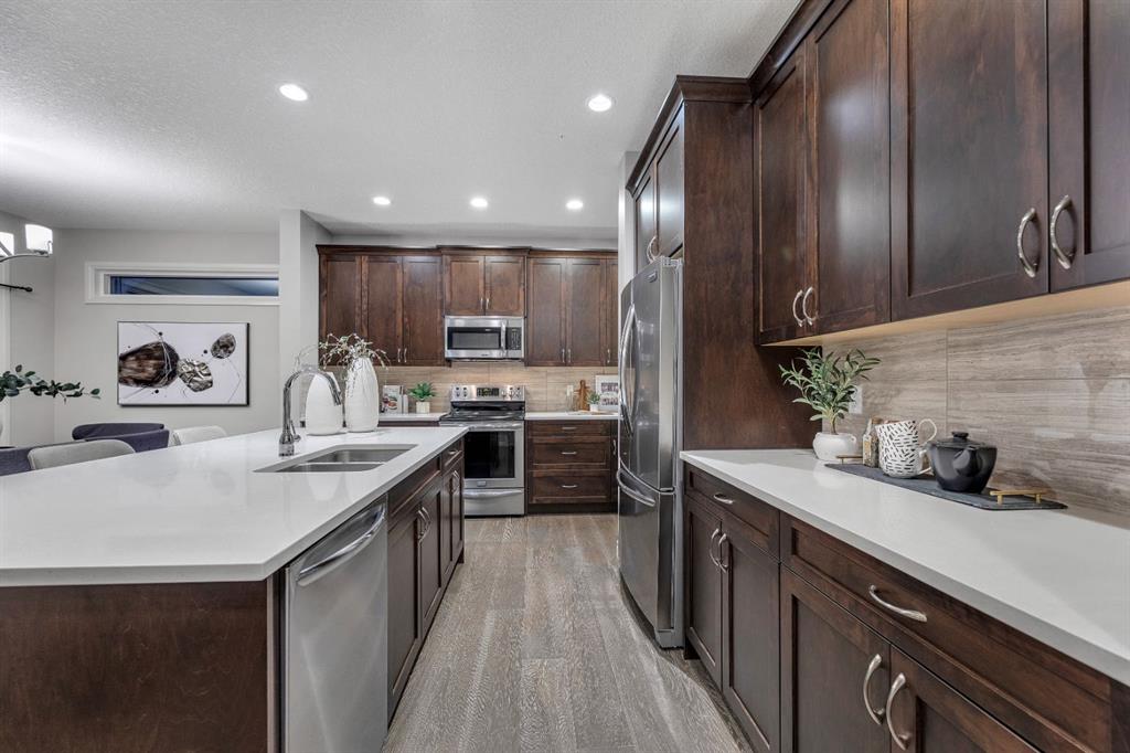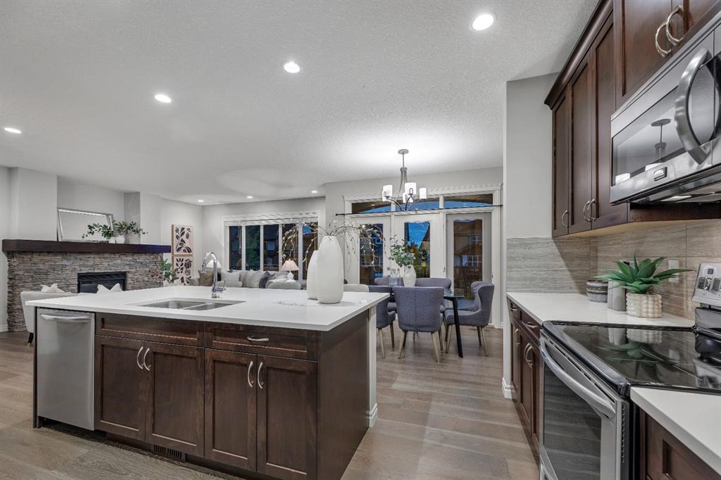 OPEN HOUSES - Saturday Nov 1, from 12:00-1:30 AND Sunday Nov 2, from 12:00-2:00 - Step into this stunning 4-bedroom Trico built walkout home, offering over 3,300 sq ft of developed living space, and backing directly onto a peaceful pathway with direct access to the Mahogany wetlands—providing rare privacy and scenic views right in your own backyard. The fully fenced yard and elevated balcony make it easy to enjoy your morning coffee or take in breathtaking evening sunsets while overlooking one of the most desirable natural landscapes in the city. Inside, a grand front entry leads into a bright, open-concept main floor where expansive windows flood the kitchen, dining, and living areas with natural light. A central fireplace serves as a cozy focal point of the living room, while the kitchen features a quartz countertop island, generous counter space, and direct access to the upper balcony for effortless indoor-outdoor living. A smart walkaround layout connects seamlessly to the mudroom, attached garage, and convenient half-bath. Throughout the main floor, engineered hardwood flooring enhances the sense of flow and style. Upstairs, you\'ll find a spacious bonus room ideal for a media area or playroom, along with two additional bedrooms that share a full bath. The standout is the luxurious primary retreat, complete with high tray ceilings, a spa-inspired ensuite featuring a soaker tub, walk-in shower, double vanity, and a large walk-in closet. The fully finished walkout basement has been newly developed with modern style ~ which offers even more living space, including another generous great room with direct access to the backyard and the serene private pathway beyond which takes you through the various nature setting wetlands. You will also find a spacious additional bedroom with outdoor access, a 3-piece bathroom, and a built-in bar area—perfect for entertaining. For further comfort and convenience, the home has dual air-conditioning, perfect for year-round comfort! Located in the vibrant lake community of Mahogany, you can enjoy exclusive access to beaches, swimming, paddleboarding, and year-round recreation with skating as a winter seasonal hi light. With top-rated schools, shops, restaurants, and a lively community center nearby, Mahogany offers the perfect blend of nature, luxury, and convenience.