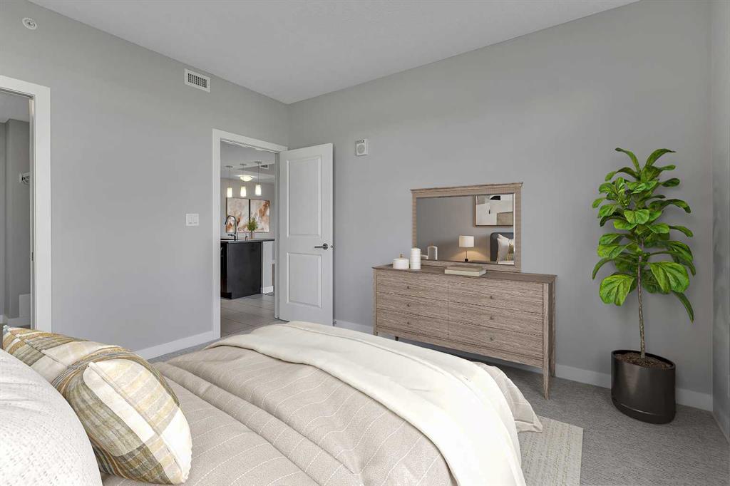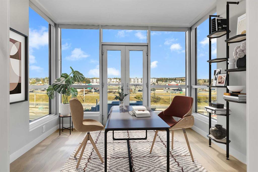 CHECK OUT THE 3D TOUR! Immaculate CORNER UNIT in The Groves of Varsity! As soon as you enter the unit, you will notice the bright and open floor plan including the spacious living and dining areas opening up to the modern kitchen which features granite countertops, ceiling height maple cabinetry, a large detached island, and stainless steel appliances. Additional living space includes a den/office space with huge windows. The primary bedroom includes a large walk through closet and a luxurious ensuite with double sinks. The second bedroom is ideal for guests and an additional den/office space. A second full bathroom, in-suite laundry, and ample storage complete the home. Additional features & updates include fresh paint, new engineered hardwood floors, new carpets, a titled underground parking stall, and a secured storage locker. Enjoy exceptional building amenities including a gym, steam room, owners lounge, rooftop terrace with mountain views and BBQ area, quiet courtyard, and tons of visitor parking. Prime location includes on site professional plaza(doctor’s office, pharmacy, and coffee shop) and across from Dalhousie LRT, Dalhousie Station Shopping Centre, and close to parks and schools. A rare opportunity to own a move in ready, upgraded corner unit in one of Calgary’s most desirable communities! Call your agent for a private showing today!