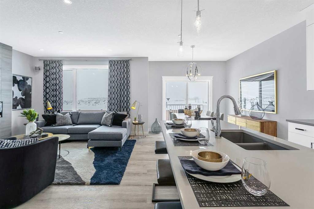Welcome to your new home in one of Calgary\'s newest and most accessible communities - Hotchkiss. This beautifully designed 2040 SF home with a double car front attached garage and rear deck offers the perfect balance of comfort, style, and convenience—a short 5 minute drive to Seton amenities and quick access to Stoney and Deerfoot Trail. Step inside to find an open-concept floor plan filled with natural light, high ceilings, and modern finishes throughout. The spacious main floor features a large flex room suitable for a home office, and flows seamlessly into a gourmet kitchen complete with upgraded Samsung stainless steel appliances, quartz countertops, and a generous island—perfect for entertaining or casual meals. Upstairs, the primary bedroom is your personal retreat with large windows, a WIC and ensuite. Two extra bedrooms and a spacious bonus room provide ample space for entertaining, as well as comfortable accommodations for family and guests.
