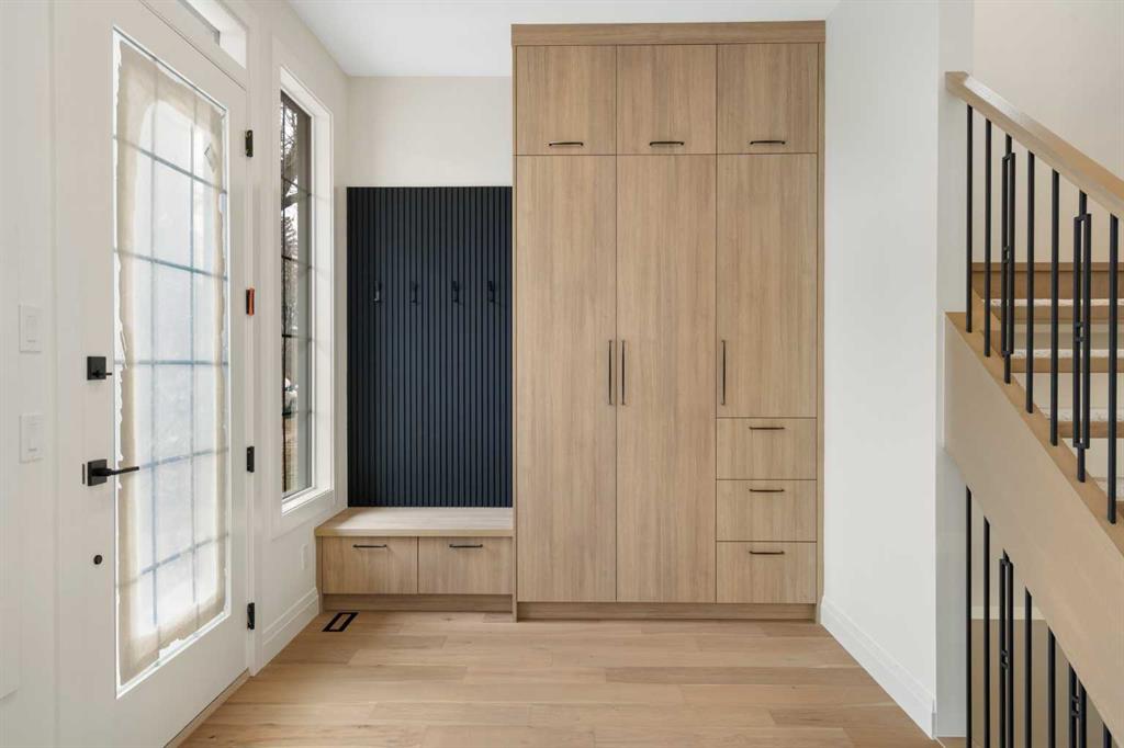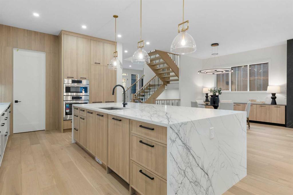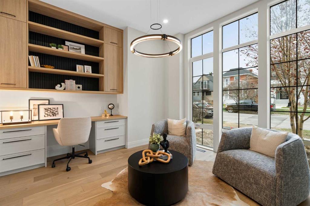 Nestled on a tranquil cul-de-sac, this JTA-designed home is a stunning example of modern luxury and thoughtful design. Located just minutes from downtown Calgary, with easy access to dining, shopping, and all the amenities the area has to offer, this property provides the perfect balance of convenience and privacy. As you enter, you’re welcomed by a spacious foyer with custom-built storage that sets the tone for the meticulous craftsmanship found throughout. To your right, a beautifully designed office overlooks the quiet front yard—ideal for those who work from home. A convenient 2-piece bathroom sits just beside, leading you into the heart of the home: the chef-inspired kitchen. This open-concept kitchen is truly an entertainer\'s dream, featuring integrated appliances for a seamless look, including a hidden beverage fridge. Ample storage is cleverly designed beneath the large central island, while around the corner, a stunning hidden pantry offers the perfect space for a coffee station and extra storage.