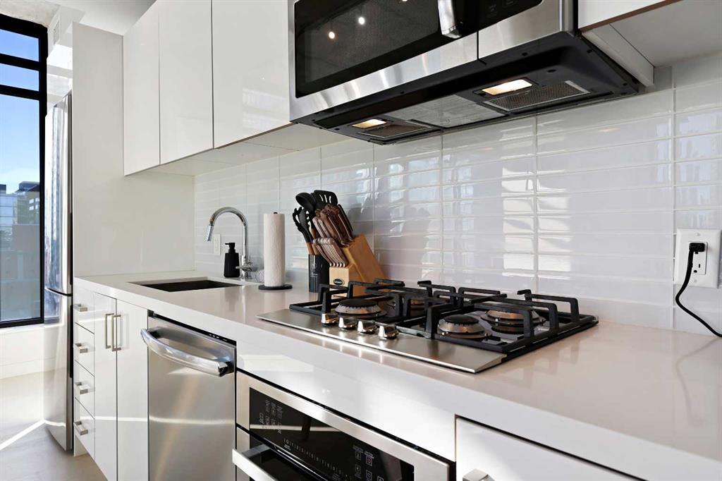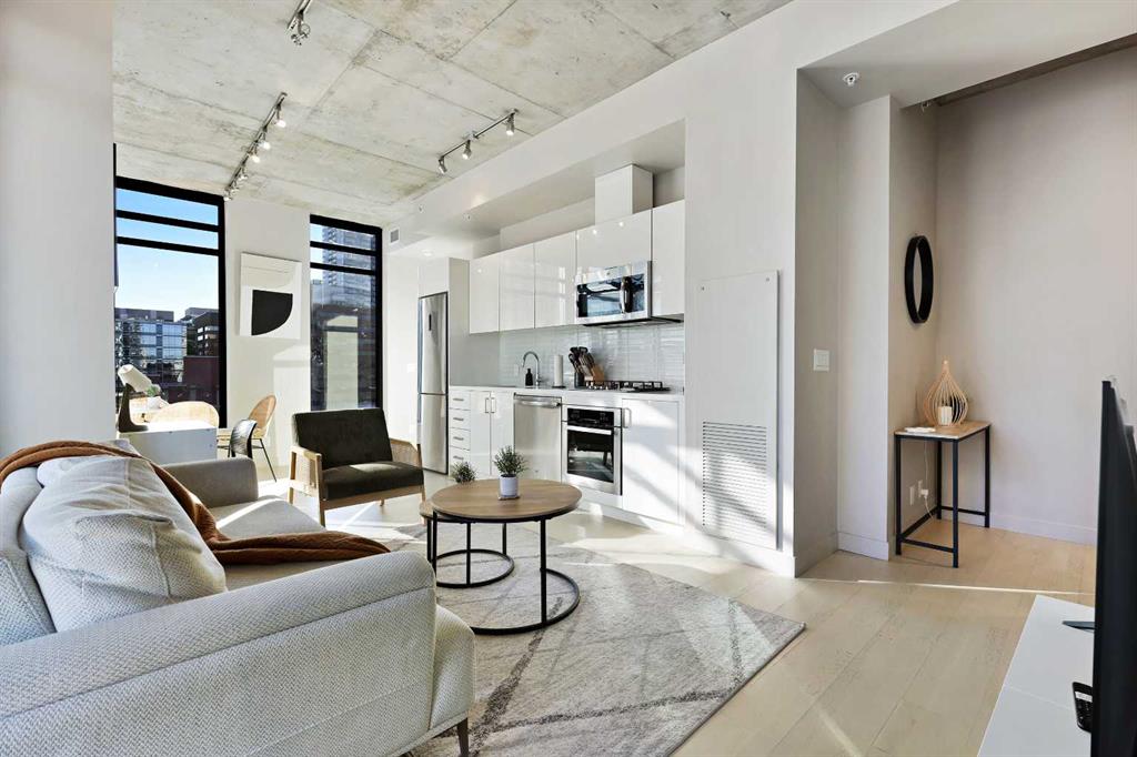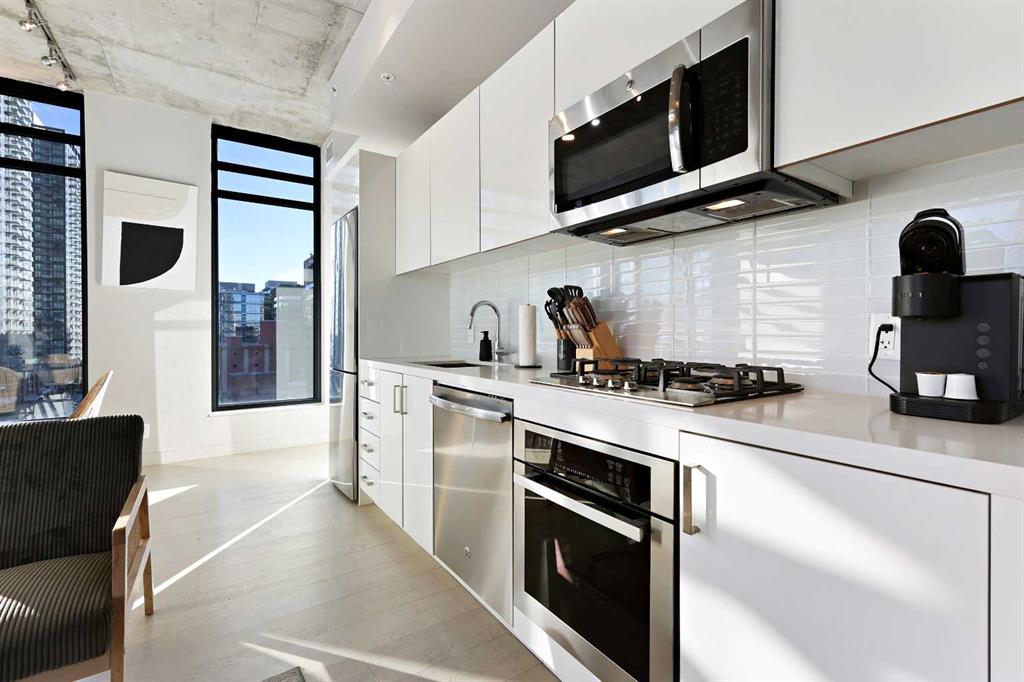 Experience modern urban living in this stylish 2-bedroom, 2-bathroom corner condo on the 6th floor of the sought-after Six and Tenth building in Calgary’s Beltline. Floor-to-ceiling windows fill the space with natural light and showcase stunning views of downtown. The open layout features exposed concrete, quartz countertops, a gas range, and stainless-steel appliances. Enjoy your private balcony, in-suite laundry, and titled underground parking. Building amenities include a fitness centre, outdoor pool, concierge, and social spaces. Located steps from amazing restaurants, shopping, and transit, and minutes to the Stampede grounds. Short-term rentals permitted, offering great flexibility for owners and investors alike.