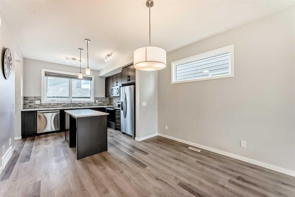 Looking for a low maintenance lifestyle, w/no condo fees in one of Calgary\'s hottest lake communities? Look no further! This exceptional fully landscaped 2 bed/2.5 bath semi detached home w/double detached garage is the one to see! Walking up to the home you\'ll appreciate the covered front porch & Hardie plank siding. Upon entering, you\'ll love the 9\' ceilings, open concept living space, fresh paint, luxury vinyl plank flooring throughout & the large windows flooding the area with natural light. The living & dining areas offer plenty of entertaining room for hosting friends & family. The good sized kitchen features a large eat up island, quartz countertops and lots of storage for the chef in your home. The powder room & mudroom complete the main floor. Outside you\'ll love the relaxing backyard with a large composite deck for dinners al fresco & grassy area w/fire pit for roasting smores. The upper level features two generous primary bedrooms w/good sized closets and ensuite baths featuring vanities w/quartz countertops. Laundry is a breeze situated on the upper level. The unfinished basement is partially framed and just waiting for your imagination. The award winning community of Mahogany has it all! The community is centered around a 63-acre freshwater lake with two private beaches, a splash park, and tennis courts at the Mahogany Beach Club. Mahogany has extensive green space, including 74 acres of wetlands, 30 neighborhood parks, and 22 kms of pathways for walking and biking, making it an urban oasis. Want more?? The Urban Village & Westman Village is home to some of the best restaurants (Chairman\'s Steak House, The Banquet, Alvin\'s Jazz Club,The Mash, etc), various retailers, groceries & services plus the South Calgary Health Campus means you don\'t have to go far. With easy access to Stoney Trail via 88 st & Deerfoot Trail make commuting a breeze. Book your showing today!