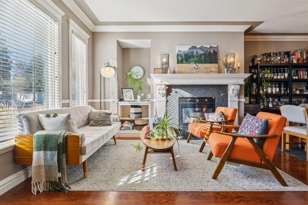 Westbrook Mall, the C-Train, and Marda Loop, and just minutes from downtown Calgary. The main floor features a cozy gas fireplace focal point, detailed trim work including crown mouldings and 6\" baseboards, and hardwood through the living and dining areas, plus a convenient main-floor powder room. The kitchen includes stainless steel appliances and opens directly to the private fenced back deck. Upstairs you’ll find a spacious primary bedroom with a vaulted ceiling and great natural light, shared access to a 5-piece bath, plus a second bedroom. The finished lower level provides a flexible rec / guest space, a 3-piece bath, a large laundry room with storage, and an additional dedicated storage area. Parking is included with an assigned stall in the shared garage. Roof was replaced in 2016 and the unit includes air conditioning. Some finishes are original and would benefit from cosmetic updates — a chance to add value and put your finishing touches on a home with great bones in one of Calgary’s most sought-after inner-city neighbourhoods.