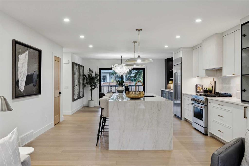 Welcome to 1013 31 Avenue NW, a rare newly renovated 1,800 sq. ft. bungalow perfectly positioned in the heart of Cambrian Heights. One of Calgary’s most sought-after inner-city communities. Just steps from Confederation Park, this home offers the ideal balance of inner-city convenience and quiet, tree-lined living. From the moment you arrive, the curb appeal is undeniable. A covered composite front porch and a brand-new exterior finished in a timeless combination of board & batten and stucco set the tone for the craftsmanship found throughout. The property also includes a newly built oversized double garage with alley access. Step inside this modern farmhouse bungalow to discover a bright, open floor plan with 9-foot ceilings at the entry, creating an immediate sense of space. The living room features a gas fireplace with custom built-ins, flowing seamlessly into the chef’s kitchen, complete with custom cabinetry, new KitchenAid built-in appliances, and a 10-foot waterfall island. Adjacent to the kitchen is a walk-in pantry, and beyond that, a spacious dining area with a custom bar that opens through 8-foot sliding doors to a south-facing backyard and large entertaining deck. The main floor also includes a beautifully designed main bathroom, a second bedroom that can double as an office, and a mudroom with built-in storage leading to the rear deck and garage. The primary suite is a true retreat - featuring 9-foot ceilings, a large walk-in closet with custom wardrobe cabinetry, and a resort-inspired ensuite with double vanity, heated floors, and a custom rainfall shower. The fully developed lower level continues to impress with a massive rec room with a bar, a beautifully designed laundry room, two additional bedrooms, and a spa like bathroom with a large shower and heated floors. This home has been completely renovated inside and out. Including new electrical, plumbing, HVAC, furnace, and central air conditioning, offering the peace of mind of a brand-new home in a highly established and desirable location.