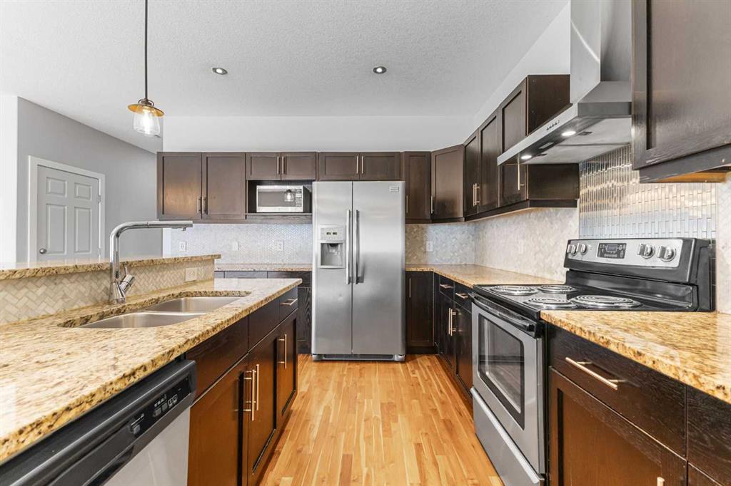 Nestled in the heart of Airdrie’s vibrant Bayside community, this home offers over 1900 sq ft of living space and 4 bedrooms above grade that blend comfort, functionality, and charm. The addition of a self contained illegal 2 bedroom basement suite provides an ideal space for guests, or as a potential mortgage helper. From the moment you arrive, the inviting front porch sets the tone for a property designed with both family living and entertaining in mind. Step inside and you are greeted by a warm, open floor plan where natural light pours across hardwood and slate floors. The main level offers a seamless flow between the living spaces, including a welcoming family room anchored by a cozy gas fireplace, a bright dining area perfect for gathering, and a thoughtfully designed kitchen with granite countertops, a breakfast bar, ample cabinetry plus a convenient walk-in pantry. A formal living room at the front of the home provides an elegant space for entertaining guests or enjoying quiet moments away from the bustle of daily life. Subtle rustic touches, including the character of sliding barn doors, add a sense of warmth and personality that makes the home feel both stylish and timeless. For added convenience, the main floor also features its own laundry area and a 2 piece powder room, making day to day living that much easier. Upstairs, the home continues to impress with four generously sized bedrooms, including a primary retreat complete with a walk in closet and a private 4 piece ensuite with relaxing freestanding soaker tub & separate shower. The additional bedrooms provide flexibility for children, guests, or even a home office, while a full bathroom ensures convenience for the entire family. The lower level is a standout feature, offering a self contained illegal two bedroom suite with its own kitchen, living and dining area, full bathroom, and private laundry. This space provides excellent potential for extended family, long term guests, or additional income opportunities, all while maintaining privacy and independence from the main living areas. Outdoors, the property is equally appealing. A landscaped yard with both a front porch and rear deck invites you to enjoy morning coffee or evening barbecues, while the fenced backyard provides privacy and space for children or pets to play. The double detached garage, complemented by RV parking, ensures there is room for every vehicle and toy. With central air conditioning, 2 furnaces, recessed lighting and closet organizers, the home is filled with modern comforts while maintaining its rustic charm. Its location within walking distance to parks, playgrounds, schools, and shopping makes it as convenient as it is welcoming. Vacant and ready for quick possession, this charming residence is more than just a house—it is a place where new stories are ready to be written.