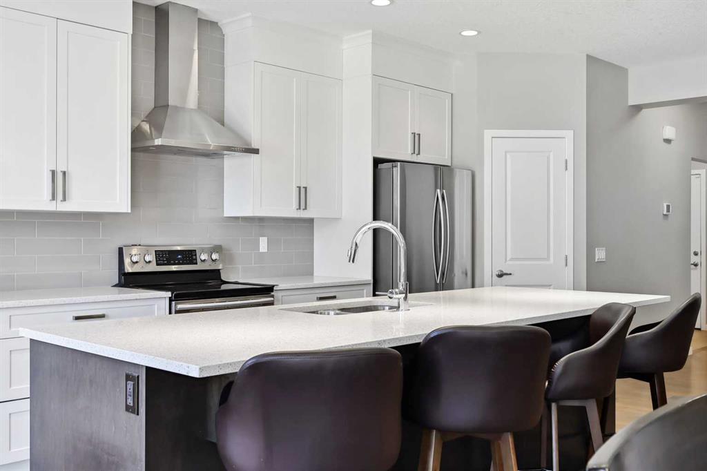 ** OPEN HOUSE ALERT 1:00 pm to 4:00 pm this SATURDAY ** QUICK MOVE IN ALERT ** 9\' CEILINGS ** FINISHED IN 2017 ** Ideally located just steps from Auburn Bay Lake, scenic walking paths, community parks, a dog park, playgrounds, meeting areas, shopping, restaurants, schools, medical facilities, South Health Campus, Seton YMCA, transit, and new Stoney Trail exits—this stylish and meticulously maintained urban home offers the perfect blend of lifestyle, comfort, and convenience. Boasting nearly 2,000 sq ft of beautifully designed living space, this custom-crafted two-Storey showcases soaring 9-foot ceilings, a wide-open layout, and quality finishings throughout. From the moment you enter, you\'ll notice the attention to detail—from the elegant wide-plank flooring and modern tilework to the upgraded baseboards, doors, casings, lighting, and plumbing fixtures. The heart of the home is the chef-inspired kitchen, thoughtfully designed with entertaining in mind. Featuring classic white shaker cabinetry, quartz countertops, a subway tile backsplash, upgraded stainless steel appliances, recessed lighting, a large walk-in pantry, and an oversized central island with a flush eating bar and under-mount sink, this space seamlessly connects to the spacious dining area and inviting great room—ideal for both everyday family life and social gatherings. Upstairs, the oversized west-facing bonus room offers additional living space bathed in natural light. The luxurious primary suite features a spa-inspired ensuite with dual sinks, an oversized walk-in shower with glass enclosure, and a generous walk-in closet. Two additional well-sized bedrooms and a full 4-piece bathroom provide plenty of room for family or guests. A thoughtfully positioned upper laundry area adds convenience to your daily routine. The basement remains unspoiled and ready for your future development ideas. The fully insulated and oversized double attached garage includes an upgraded insulated garage door. Outside, enjoy a large east-facing backyard—perfect for morning sun—with a raised wood deck and fully fenced yard for privacy. The attractive exterior\'s curb appeal is enhanced by smart board-and-shake-style accents, rich architectural detailing, and a welcoming covered front entry. With an ideal location, modern design, and move-in-ready condition, this home delivers tremendous value in one of Calgary\'s most desirable lake communities. Don’t miss your opportunity to own this exceptional property—call your friendly REALTOR® today to schedule a private viewing!