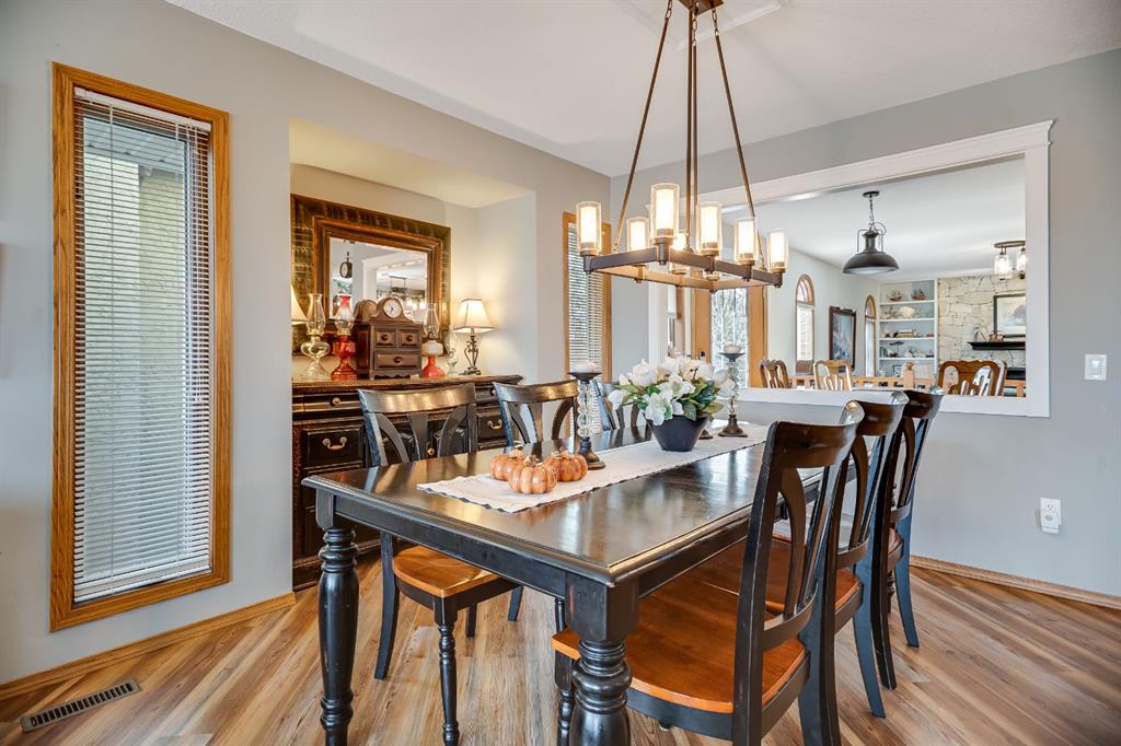 The main floor is an entertainer\'s delight, offering an open-concept living area, a formal dining room, and a cozy family room with a gas fireplace. It features a fantastic sunroom with a curved wall of windows and electric-shade-equipped skylights, plus a functional kitchen with a nook, updated appliances, and plenty of storage.
