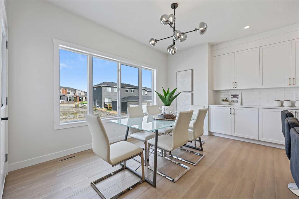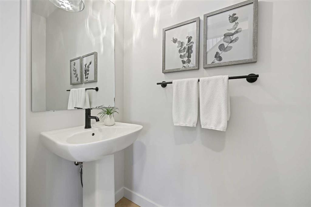 Genesis Builders presents the Ashdale, a thoughtfully designed 3 bedroom 2.5 bathroom home offering more than 2200 square feet along with a main floor office. Stepping inside, you are greeted by the warm ambiance of neutral tones and airy 9\' ceilings. The luxury vinyl plank flooring guides you through the open concept main floor living space. The heart of the home is the chef’s kitchen with cabinetry finished in chantilly lace, accented by black and gold hardware, a wood grain island, a glossy white herringbone tile backsplash, and bright quartz countertops paired with a stainless steel appliance package. The open concept living area offers a generous dining room that flows into the living room and provides access to the north backyard where you will enjoy sunny evenings and beautiful sunsets. A stone faced feature fireplace anchors the living room and adds warmth and style. Complimenting the main floor is a private office, a powder room, and a convenient walk through pantry from the mudroom that connects to the double attached garage. Upstairs, a central bonus room with a tray ceiling greets you and separates the primary bedroom from the second and third bedrooms. The primary bedroom is a spacious retreat with an ensuite bathroom that includes double sinks, an oversized tiled shower, and a large walk in closet. The additional bedrooms are generous in size and function perfectly for kids or guests. A beautifully finished full bathroom and a laundry room complete this floor. The basement is a blank canvas with upgraded 9\' ceilings and awaits your design ideas. Situated in the desirable bayview community, this family friendly neighborhood offers endless ways to get outside. You are steps from Nose Creek Elementary School, the pathways that wind along the scenic canals, a new playground, and so much more. *Area size was calculated by applying the RMS to the blueprints provided by the builder. Photos are representative colors and finishes may vary.