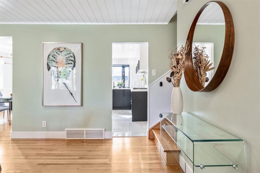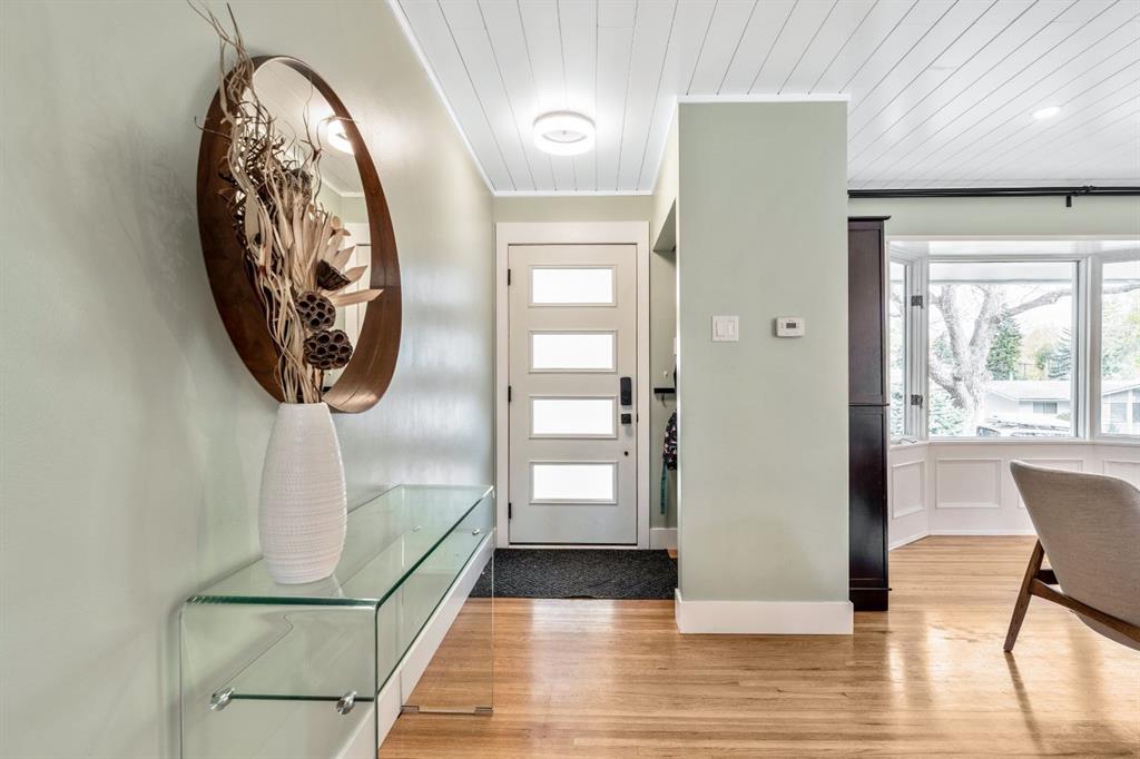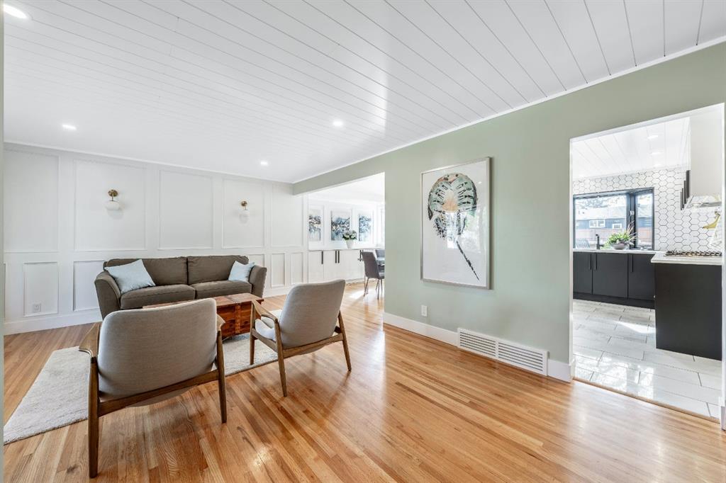 PEACE OF MIND UPDATE! Sellers are replacing the original Sewer Lines on Nov 12, 2025. Open House: Sat, Oct 25, 2-4 pm | Charleswood Charm with Stylish Updates! | Nestled on a peaceful, tree-lined street right in the heart of Charleswood, this beautifully updated four-level split is the perfect mix of charming character, modern convenience, and a welcoming, family-friendly community. With over 1,950 square feet of thoughtfully developed space, this home has been lovingly upgraded over the years to be both warm and stylish, and mechanically efficient. Step inside and you\'ll be greeted by gorgeous hardwood floors, rustic shiplap ceilings and wood panelled walls, and a bright, open-plan living space that feels inviting and effortlessly livable. The sleek designer kitchen is a dream for busy family life, with two-tone modern cabinetry, quartz countertops, stainless steel appliances, and plenty of counter space. The adjacent dining and living areas are both spacious and flexible, filled with natural light that creates a cheerful and homey vibe. Upstairs, you’ll find three comfortable bedrooms and a beautifully updated family bathroom. The lower level has a versatile fourth bedroom (or home office) along with an updated three-piece bathroom and fabulous dual purpose laundry-mudroom that keeps everything organized and the mess at bay. Check out the cozy family room in the lower level, with a stylish electric fireplace complimented by a wooden slat wall, and additional flexible space that’s perfect as a play space or exercise area. Out back, the south facing backyard feels like your own private oasis—complete with mature, fruit-bearing trees, lush landscaping, and enough space for outdoor fun and entertaining. The home also features a heated double detached garage in addition to the single attached garage, giving you plenty of parking and storage options. Located in one of Calgary’s most desirable NW neighbourhoods, you’re just minutes from the University, K-9 schools, parks, pathways, and all the amenities you could need. Don’t miss your chance to own this beautifully updated charmer in ever-popular Charleswood!