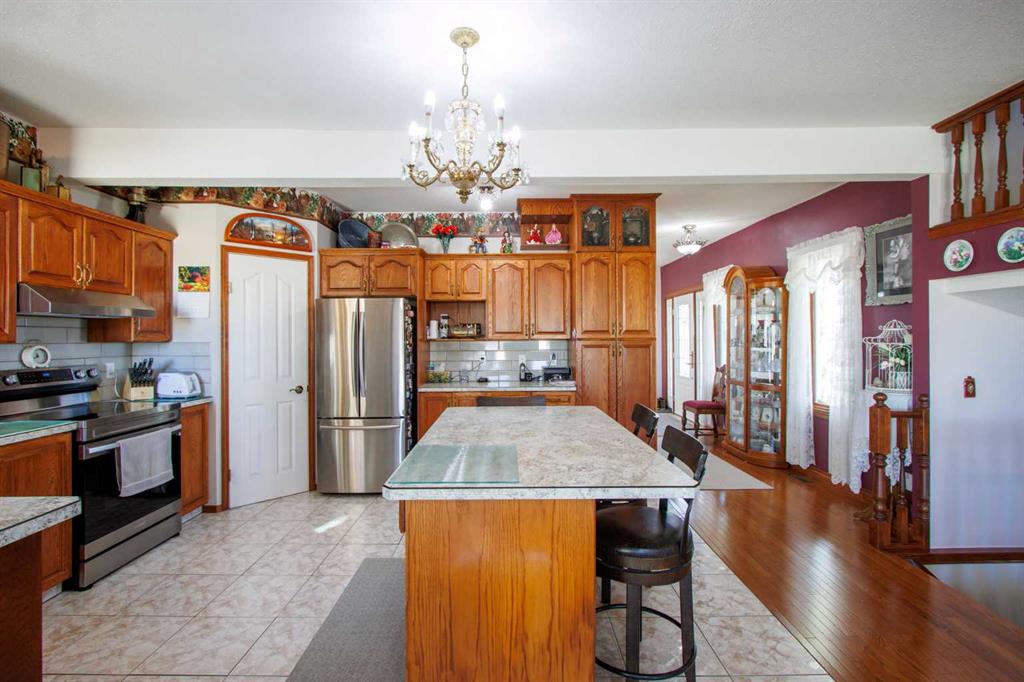 Originally built in 1917, this iconic home, affectionately known as “The Big House,” was moved to its current location in 1995, where it was completely redone from the studs out. Electrical, plumbing, insulation, and, most importantly, a new foundation were all added at that time, giving the home the best of both worlds; modern reliability and historic charm. Over the years, the home has continued to evolve, with updated windows, doors, roof, and appliances providing comfort and peace of mind for years to come. Upstairs, what was once a five-bedroom layout has been reimagined for today’s lifestyle, featuring two bedrooms, a cozy family room, a full four-piece bathroom, and a primary suite with a separate walk-in closet and dressing area. Step out onto the upstairs balcony and take in the breathtaking view as the sun sets over the Rocky Mountains. The main floor is warm and welcoming, offering hardwood floors that lead you through to the kitchen and dining room, a bright kitchen with island seating, a dedicated dining area, and a comfortable living room filled with natural light. Step through the dining room doors to your private backyard oasis—perfect for summer evenings and quiet mornings. Downstairs, you’ll find the ideal space for entertaining with a large games room anchored by a wood-burning fireplace, plus one additional bedroom, a flex room that could easily be converted back into a bedroom, and plenty of storage. Outside, the property offers 4.99 acres of private, uninterrupted living with mountain views, cross-fencing for horses or livestock, and gated access for ultimate privacy. The indoor pool room, finished in cedar, provides the perfect place to stay active year-round or to entertain the kids and grandkids. A charming kids’ cabin tucked away on the property has been a cherished retreat during family gatherings—an inviting spot for adventure, imagination, and memories that will last a lifetime. For hobbyists or collectors, the property offers unmatched workspace with an oversized triple garage, a 2,724-square-foot shop, and a 3,303-square-foot heated shop—perfect for projects, storage, or a home-based business. This is more than a home. It is a legacy property that has turned heads for generations and is now ready for its next chapter.