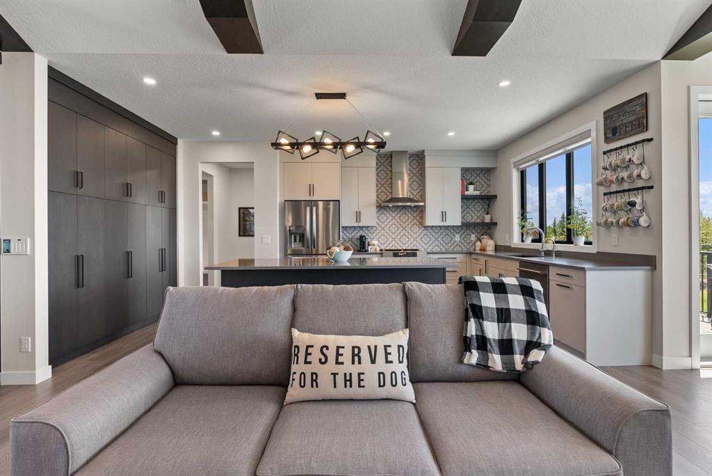 Discover this beautiful home just outside of Cochrane in Monterra. Offering nearly 3,400 sq ft of thoughtfully developed living space on a generous 0.45-acre lot, it delivers the top-tier essentials buyers crave. The main floor impresses with an open, airy design featuring vaulted ceilings that create a bright, inviting atmosphere. The spacious kitchen boasts a large island and soft-close cabinets, flowing seamlessly into the dining and living areas—ideal for hosting family and friends.
