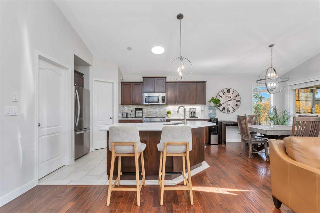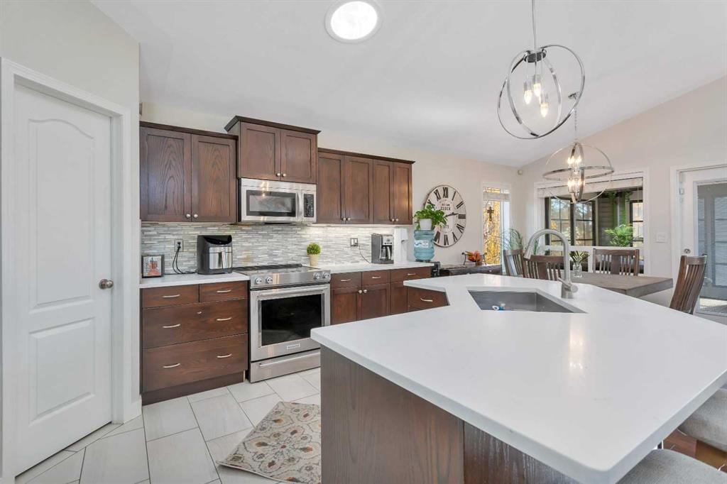 Welcome to your family’s next chapter in this beautifully developed walk-out bungalow, perfectly situated in a quiet cul-de-sac. With 4 bedrooms, 3 full bathrooms, and 1,419 sq ft of well-planned living space on an impressive 11,000 sq ft lot, this home offers a perfect blend of comfort, functionality, and outdoor beauty. Step inside to an open and inviting main floor featuring handscraped hardwood floors, quartz countertops, and a freshly painted interior filled with natural light from multiple skylight tubes. The heart of the home is the bright living area centered around a marble fireplace feature, creating a cozy space for family nights. Just off the dining area, the 3-season sunroom with Duradeck flooring is perfect for relaxing mornings or evening chats while enjoying the serene backyard view. The southwest-facing backyard is a true retreat, complete with an outdoor fireplace, hot tub, and a stunning rock waterfall surrounded by flagstone walkways and stone steps. With over 100,000 lbs of stonework, this outdoor space offers beauty, privacy, and plenty of room for kids to play or adults to entertain. The fully finished basement features in-floor heating, a spacious family room, wet bar, and pool table, making it an ideal hangout for all ages. Both the front(23\'1x23\'7) and rear (28\'9x29\') garages are heated and have epoxy flooring, while the rear garage adds a wood stove with marble backdrop for warmth and character. Additional features include central air conditioning and a water softener for everyday comfort. Close to schools, playgrounds, shopping, and scenic walking trails, this exceptional Inglewood home is perfect for families seeking space, style, and a welcoming community to call home.
