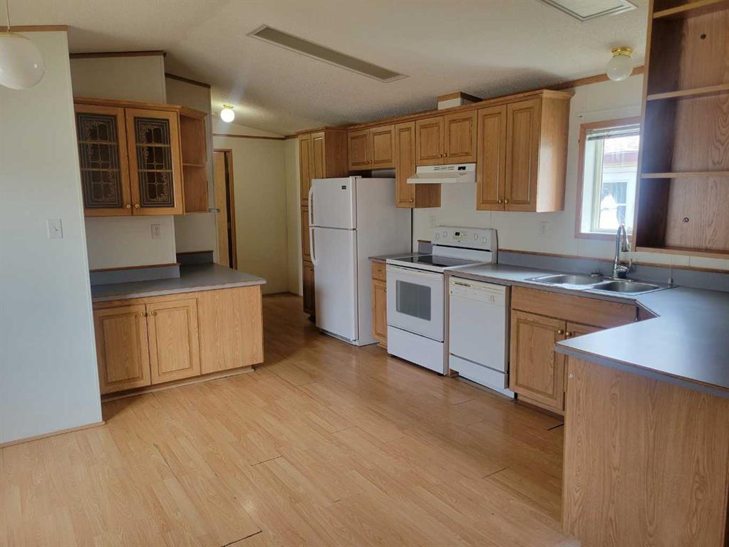 Now offering for sale at $194,900!! Discover this charming 2004 Sri Homes single wide mobile home in Creekside, ready for new owners! Well-maintained and spacious, this open-concept home features vaulted ceilings, loads of cabinets, and ample countertops in the kitchen—perfect for cooking and entertaining. The large master bedroom includes a big tub and a separate toilet area, along with plenty of storage. The main living area offers laminate flooring, while two additional bedrooms and a full bath are located on the other end, ideal for guests or family. The property provides parking for 2 vehicles at the front and 2 more in the rear, with plenty of room to build a shed or garage. Enjoy relaxing on the nice-sized deck. Sold as-is / Offers can be conditional.