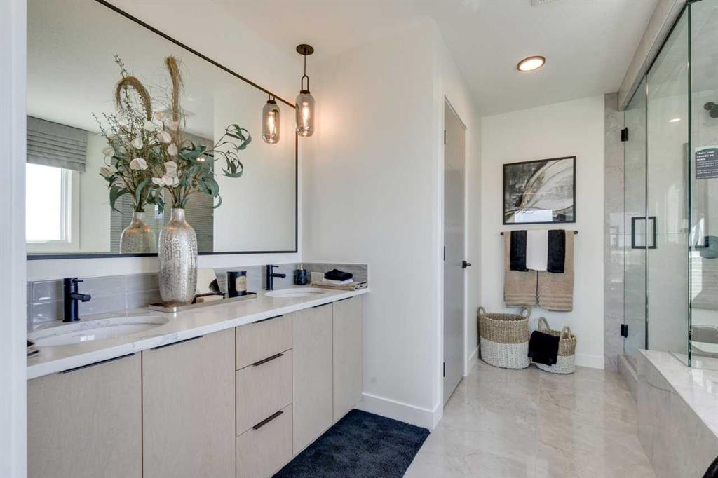 The executive kitchen features built-in stainless steel appliances, gas cooktop, chimney hoodfan, striking waterfall island, pendant lighting, and a pantry with a French door. A main floor flex room adds versatility, while the great room impresses with open-to-above ceilings and a cozy gas fireplace. Enjoy the upscale feel of 8\' doors on the main floor and natural light from abundant windows throughout. The spacious 5-piece ensuite includes a tiled shower, soaker tub, and a bank of drawers, while the main bath offers dual sinks. Upstairs, the bonus room is enhanced with a tray ceiling, perfect for relaxing or entertaining. This energy-efficient home is Built Green certified and includes triple-pane windows, a high-efficiency furnace, and a solar chase for a solar-ready setup. With blower door testing plus an electric car charger rough-in, it’s designed for sustainable, future-forward living.