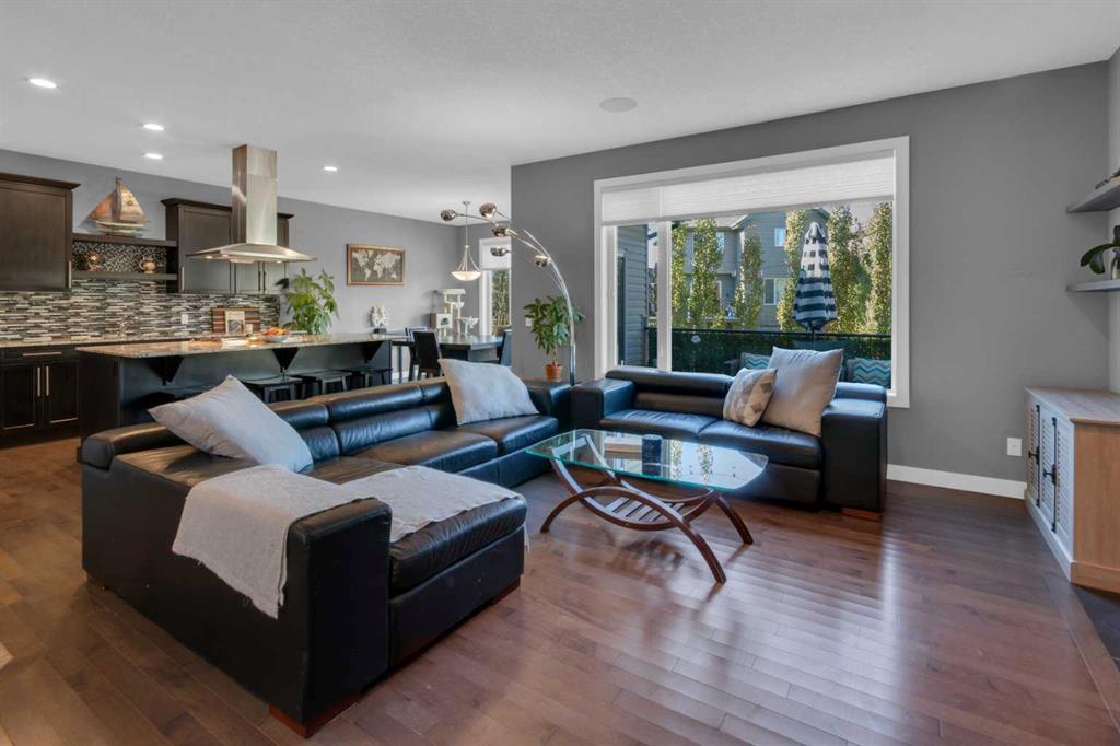 OPEN HOUSES on Sat Nov 1st & Sun Nov 2nd at 2-4pm ** Welcome to this beautifully maintained 2 storey WALKOUT home on MASSIVE 664sqm Pie shaped lot in the sought after community of Sunset Ridge, Cochrane. With over 2612 sq. ft. of finished living space, this property offers the space and flexibility a growing family needs. Situated on a quiet cul de sac, the home features an inviting open concept main floor with hardwood and tile flooring, a spacious kitchen with granite countertops, and a bright dining area that opens onto a large west-facing deck, perfect for morning coffee or family BBQs. Upstairs, you’ll find three comfortable bedrooms, including a primary suite with ample closet space and 5pc ensuite bath. The walkout basement expands the living area with laminate flooring and a home theatre setup featuring a projector, 120\" screen, Klipsch sound system, and receiver, included. Note: roughed in for wet bar. Additional highlights include central air conditioning, a double oversized 23\'4x19\'4 attached garage, underground sprinklers and a fenced yard ideal for kids and pets. Shopping, schools and parks are just steps away, making this an exceptional family home in one of Cochrane’s most desirable neighborhoods.