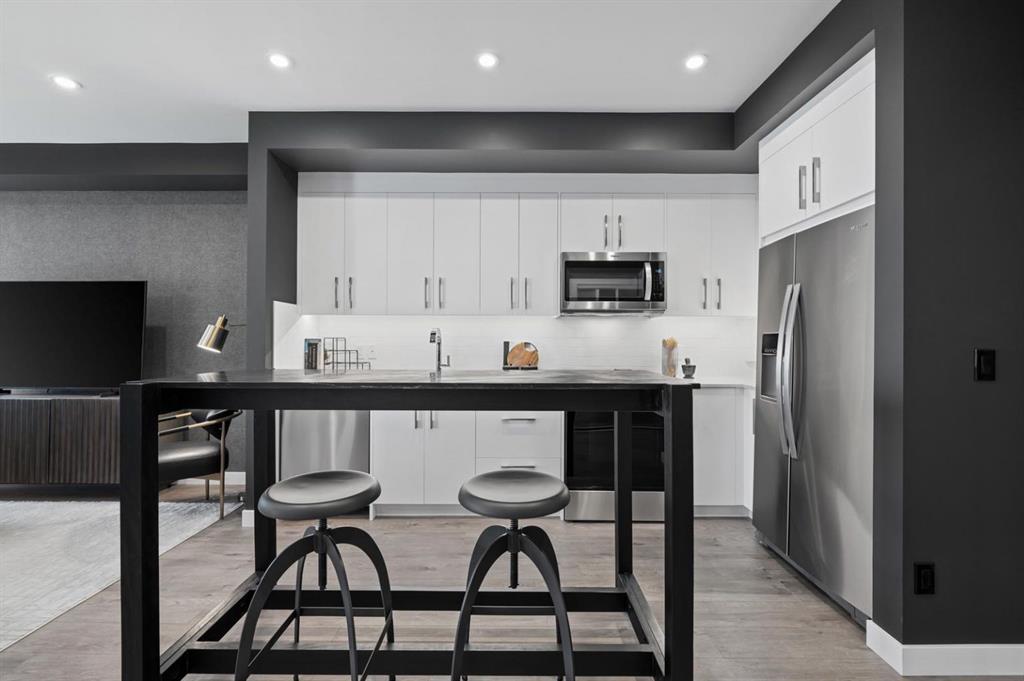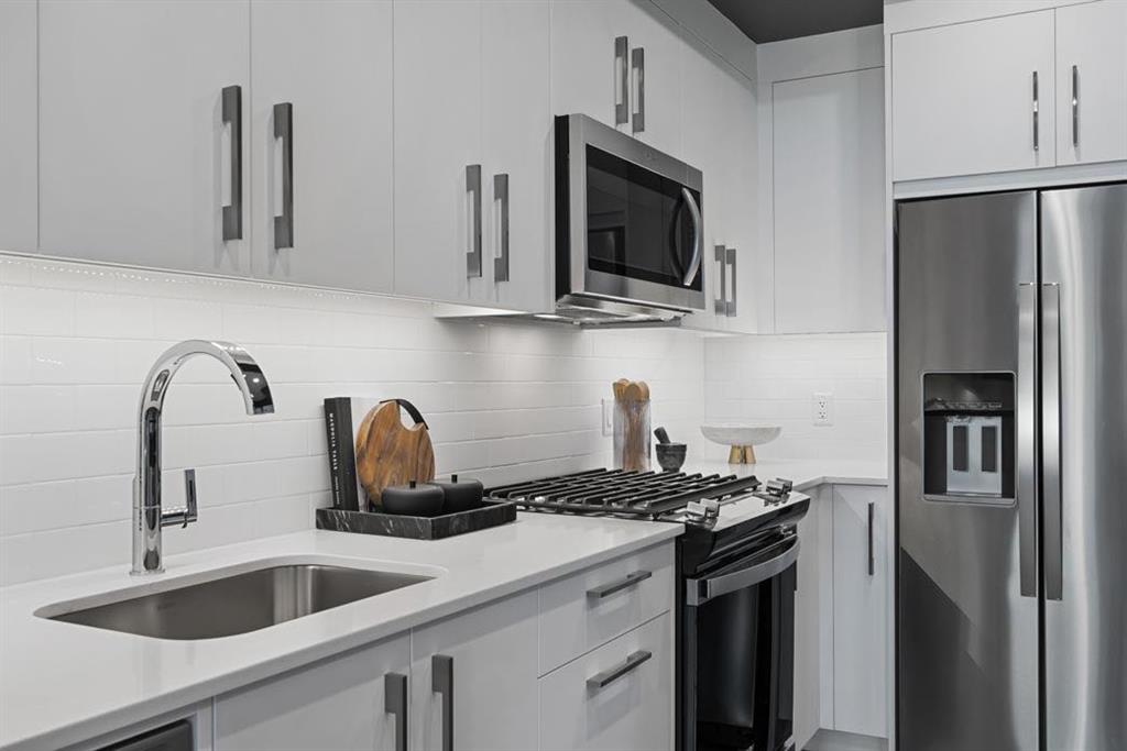 This 2-bedroom, 1-bathroom condo is a smartly designed space that balances style and functionality, making it an excellent choice for urban professionals, couples, or savvy investors. The open-concept layout is filled with natural light, offering a contemporary flow that maximizes efficiency in every square foot. The streamlined kitchen features quartz countertops, full-height cabinetry, and premium stainless steel appliances—all connected seamlessly to the bright, airy living area, perfect for hosting friends or unwinding after work. Both bedrooms are designed with comfort and flexibility in mind—ideal for restful nights, a productive work-from-home setup, or accommodating guests. The sleek 4-piece bathroom is finished with clean, modern details, combining function with a spa-inspired feel. Additional features include one titled underground parking stall and access to exclusive resident amenities such as a fully equipped fitness centre, co-working lounge, secure bike storage, and a beautifully landscaped private terrace. Just steps from boutique shops, cafés, acclaimed dining, scenic river pathways, LRT stations, and Calgary’s downtown core, Frontier offers exceptional value and location for those looking to live or invest in one of the city’s most vibrant communities. *Photo Gallery of Similar Unit*