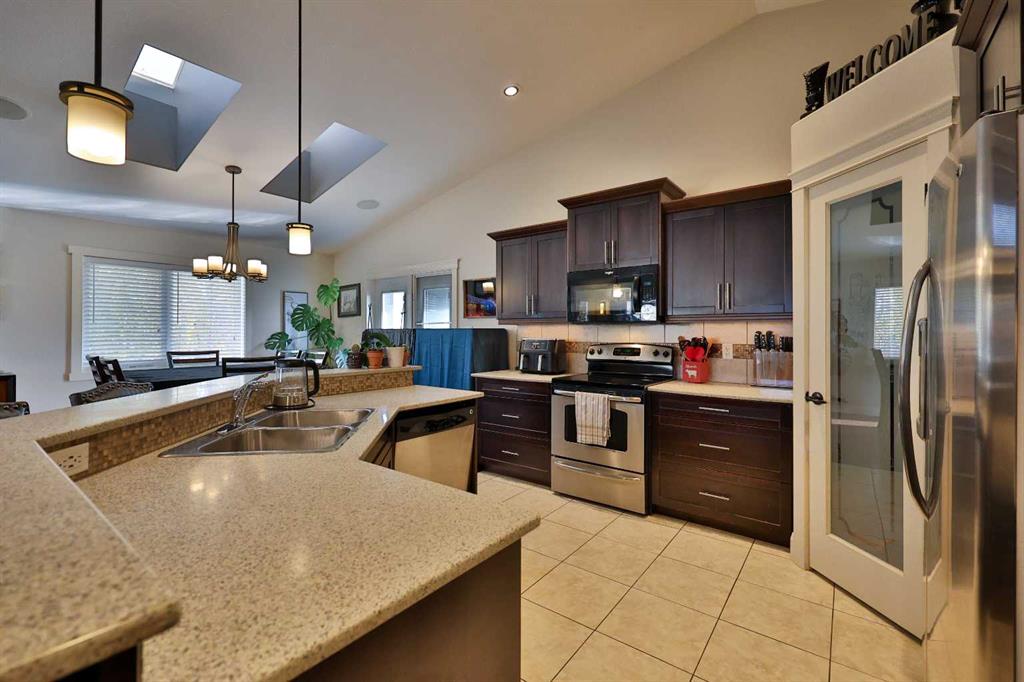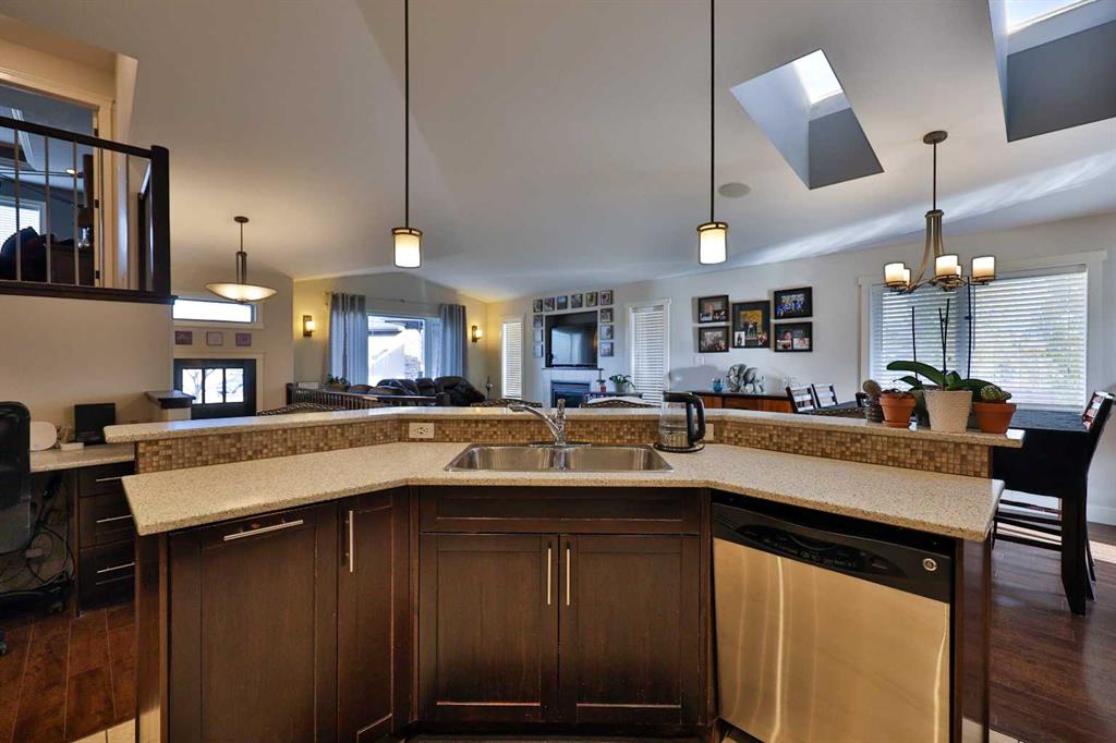 Welcome to this beautifully maintained executive modified bi-level home built by Grizzly Ridge! It offers over 1,700 sq. ft. of comfortable living space with thoughtful details throughout. Built in 2009, this property combines functionality and luxury in a quiet south-side crescent location. And car enthusiasts and hobbyists will appreciate not one, but TWO heated double garages—an attached 22\' x 25\'6\" garage plus a detached 24\' x 24\' garage with 10’ ceilings, 220 power, and built-in speakers! The spacious main level features vaulted ceilings, a bright open-concept living area, and a stunning kitchen with a large centre island and plenty of storage and workspace. The generous primary suite is a true retreat, complete with a double vanity, walk-in shower, and relaxing soaker tub. Both the main floor and upper bathroom feature in-floor heating for added comfort! Downstairs, the full walk-up basement feels bright and inviting with 9’ ceilings and large windows that bring in plenty of natural light. The expansive family room is perfect for movie nights, games, or entertaining—with a pool table and hot tub included. There’s also additional parking space behind the home for extra vehicles or guests. Additional highlights include built-in indoor and outdoor speakers, two fireplaces, central A/C, underground sprinklers, a covered rear deck, glass railings, and a fully fenced, landscaped yard. This is a rare opportunity to own a spacious, move-in-ready home with exceptional garage space and an ideal layout for family living or entertaining!