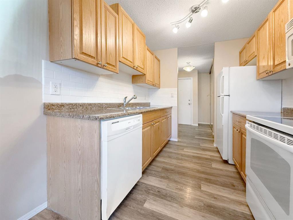 Enjoy the ease of turn-key in this updated 1st floor condo offering comfort, affordability, and security all in one. This 2-bedroom unit is part of a well-kept, secured building and is cheaper than rent. The renovated, open-concept design feels welcoming and functional, complete with in-suite laundry and modern finishes throughout. Being on the 1st floor offers such ease for coming and going—perfect for hauling groceries or just enjoying convenient access every day. Ideal for first-time buyers, downsizers, or anyone wanting a low-maintenance lifestyle. Condo fees of $292/month include heat, water/sewer, garbage, snow removal, exterior upkeep, insurance, and parking. A terrific addition to your portfolio or, an easy move in and enjoy option close to everything Stettler has to offer.