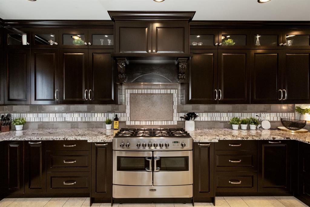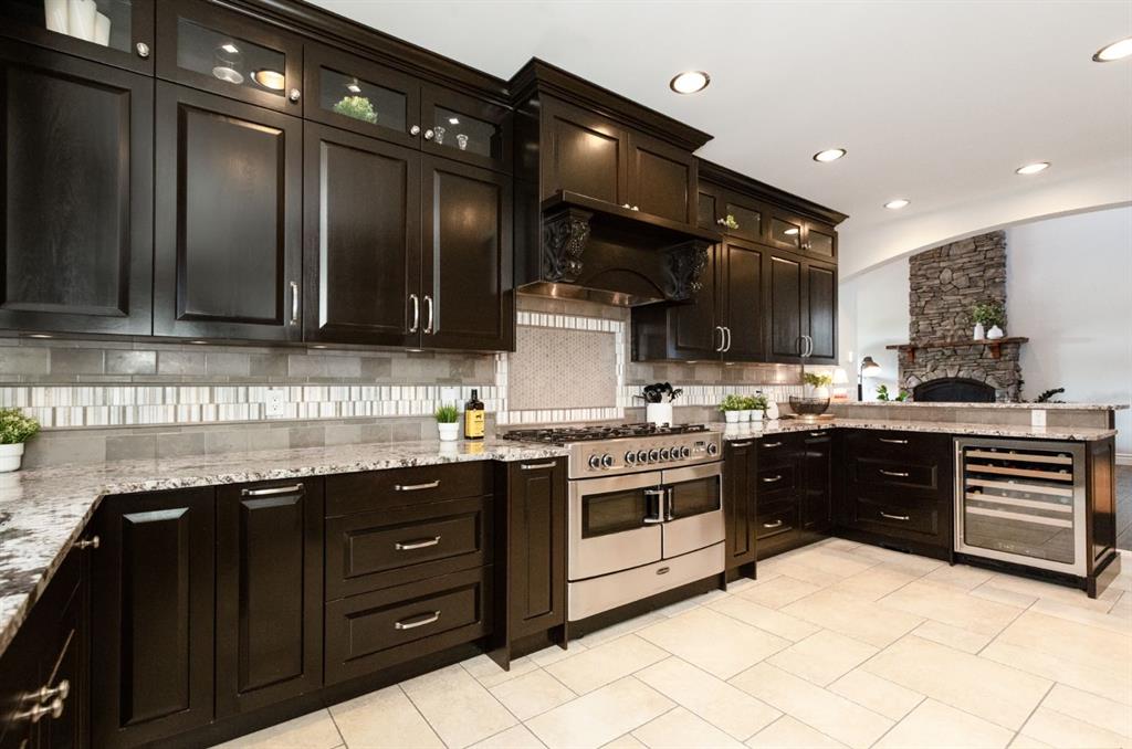 The kitchen is every chef’s dream, designed with entertaining and everyday living in mind. It features a double-oven six-burner Heartland stainless steel gas stove, a Sub-Zero side-by-side stainless steel fridge, granite countertops, a walk-in pantry, and a spacious breakfast bar — all surrounded by exceptional craftsmanship and finishes.