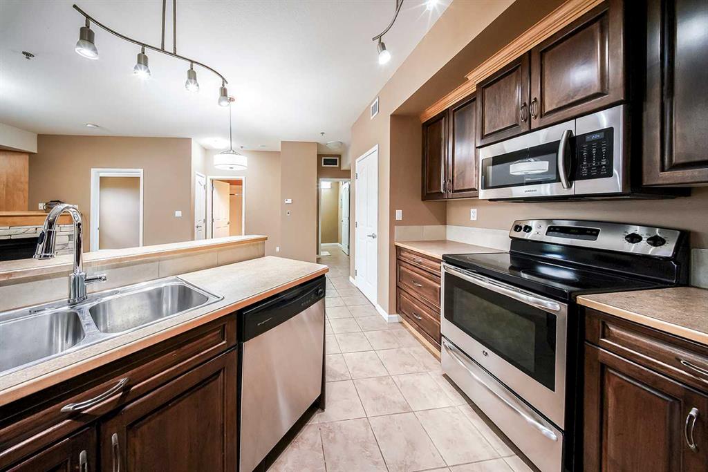 Welcome to Fairway Estates, one of Sylvan Lake’s most sought-after condominiums! This stunning 2-bedroom, 2-bathroom condo offers breathtaking views of the 18th fairway of Sylvan Lake Golf & Country Club from your spacious, covered second-floor balcony — perfect for enjoying your morning coffee or relaxing evenings. Inside, you’ll find a bright and open floor plan featuring an updated kitchen with stylish cabinetry, ample cupboard space, a breakfast bar, and a cozy dining area. The inviting living room is centered around a charming corner gas fireplace and also provides access to the balcony for seamless indoor-outdoor living. The large primary bedroom is a true retreat with its own balcony access, a walk-in closet, and a luxurious ensuite that includes a deep soaker tub and separate water closet. A generously sized second bedroom and a full 3-piece main bathroom offer plenty of space for guests or family. Additional features include a linen/storage closet and an in-suite laundry room with space for a small deep freeze, second fridge, or extra shelving. This unit also comes with 2 TITLED UNDERGROUND PARKING SPACES as well as assigned storage. Fairway Estates is ideally located just a short stroll from the waterfront, restaurants, shops, walking paths, and more. The building is rich in amenities including a hot tub, steam room, exercise facility, library, pool table, banquet room, car wash and more – everything you need for a vibrant and convenient lifestyle. Don’t miss your chance to enjoy carefree condo living with the best of Sylvan Lake right at your doorstep!