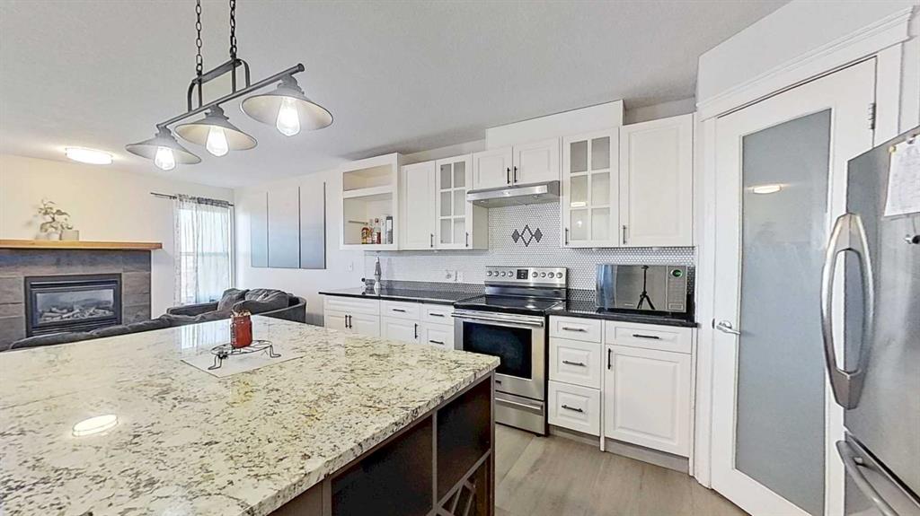 This 2009 duplex has been extensively updated in 2019, featuring vinyl plank flooring and a custom kitchen with appliances. The open-concept main floor is designed for entertaining, with a spacious dining area, large island, and living room with fireplace. Upstairs includes a private primary suite with ensuite, three additional bedrooms, and upper-level laundry. The unfinished basement offers interior and walk-out access with great potential for future development. Located in the community of Carstairs, close to schools, parks, shops, and convenient highway access. Enjoy the fully fenced yard, oversized double garage, and additional parking pad. Modern and ready to move in.