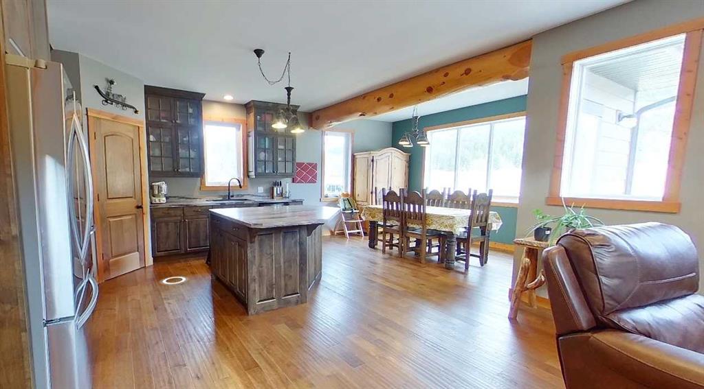 Beautiful custom home in desirable Mohawk Meadows! This stunning 1.5-storey residence offers 1,723 sq. ft. of thoughtfully designed living space with 3 bedrooms and 2.5 bathrooms, including a spacious main-floor primary suite. The open-concept floor plan showcases exceptional craftsmanship throughout, featuring custom log work, solid fir doors and trim, and tongue-and-groove vaulted ceilings. Enjoy hand scraped oak hardwood floors and a gorgeous Alder kitchen with cabinetry extending to the 9\' ceilings. The impressive Yucatan stone fireplace serves as the focal point of the living area, with matching stonework accenting the chimney and foundation. The full unfinished basement provides plenty of potential for future development, with room for two additional bedrooms, a large rec room, and a roughed-in bathroom. Outside, the 24’ x 30’ heated shop was built in 2023, it offers 12’ ceilings, an 18’ x 10’ overhead door, and is roughed in for water, making it perfect for vehicles, hobbies, or extra storage. Located in a quiet area surrounded by stunning mountain views, this property offers quick access to world-class outdoor recreation in the Crowsnest Pass. A rare opportunity to own a truly custom home that blends natural materials, craftsmanship, and functionality in a beautiful setting.