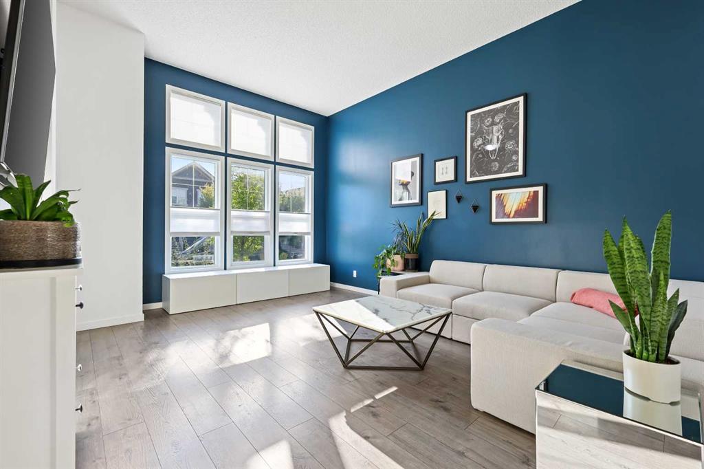 This stunning 2-storey home is a showstopper from the outside in, with charming curb appeal and low-maintenance landscaping featuring lush green turf, a flowing garden bed, and a serene bench area perfect for enjoying the neighborhood. Step inside and be immediately impressed by the soaring nearly 12-foot ceilings in the front living room, bathed in natural light from a large picture window that frames the outdoors. Custom feature walls and elegant wainscoting elevate the décor, giving this home a warm yet sophisticated feel. A few steps up, the main floor unfolds into a spacious dining area framed with glass railing, overlooking the living room and flowing seamlessly into the chef-inspired kitchen. Here you will find a bright quartz peninsula with waterfall edge, silgranite Blanco undermount sink, and striking two-tone cabinetry in crisp white and gunmetal blue. A matte white hex mosaic backsplash, crown molding, and wide Portland Grey laminate flooring add style and cohesion. The sleek stainless steel Samsung appliance package includes a glass-top electric convection range and a refrigerator with exterior water and ice dispenser – perfect for both everyday living and entertaining. Upstairs, discover three generous bedrooms including the primary retreat with a spa-like 3-piece ensuite featuring an oversized double shower with glass sliding doors and a spacious walk-in closet. Two additional bedrooms share a full 4-piece bath, and the convenient upper-level laundry with side-by-side washer/dryer adds function to form. Jayman BUILT’s Core Performance features are included for efficiency and peace of mind, such as a Navien tankless water heater, high-efficiency furnace, HRV system with timed moisture control, Kohler sinks and toilets, and Moen fixtures throughout. The unfinished basement offers incredible potential with soaring ceilings and roughed-in plumbing, ready for your future development plans. Step outside into your private backyard oasis, currently set up as a fully fenced outdoor entertainment area with bistro lights, a grassy section, and paving stones – perfect for summer gatherings. There’s even room for a future double detached garage if desired. Located in the award-winning lake community of Mahogany, you’ll enjoy four-season lake living, beaches, skating, restaurants, shops, and a vibrant urban-suburban lifestyle. This is more than a home – it’s a lifestyle upgrade.