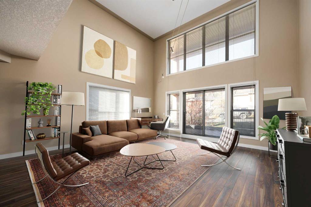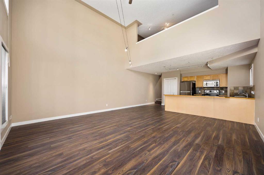 Step into a truly unique corner unit loft that redefines city living, offering a vibrant lifestyle in the heart of South Calgary, just steps from the trend-setting Marda Loop. This freshly painted two-storey, 1-bed, 1.5-bath sanctuary is flooded with bright, natural light thanks to a dramatic, extra wall of windows—a spectacular feature exclusive to this corner position. The open-to-above loft design creates an airy, grand atmosphere, complemented by a functional main floor featuring luxury vinyl plank, stainless steel appliances (newer fridge), a pantry, a massive eat-up bar, and a tucked-away 2-piece guest bath. Step outside onto your private, ground-floor concrete deck, a fantastic extension of your living space that offers direct outdoor access, perfect for pet lovers. Ascend to the private upper-level primary retreat, which overlooks the living area and includes a 4-piece ensuite with a separate standing shower and a deep soaker tub—your personal sanctuary. Enjoy the convenience of a dedicated main-floor laundry area, clever under-stair storage, and the comforts of in-floor heating. Beyond the unit, the building offers an elevator and a titled, secure underground parking stall with room for additional storage. Condo fees include: Heat, Gas, Water and professional management. Enjoy a walkable lifestyle, moments from the shops, cafes, and green spaces of Marda Loop and River Park, then retreat to your chic, tranquil loft. This bright, distinct, and highly functional corner loft could be yours.