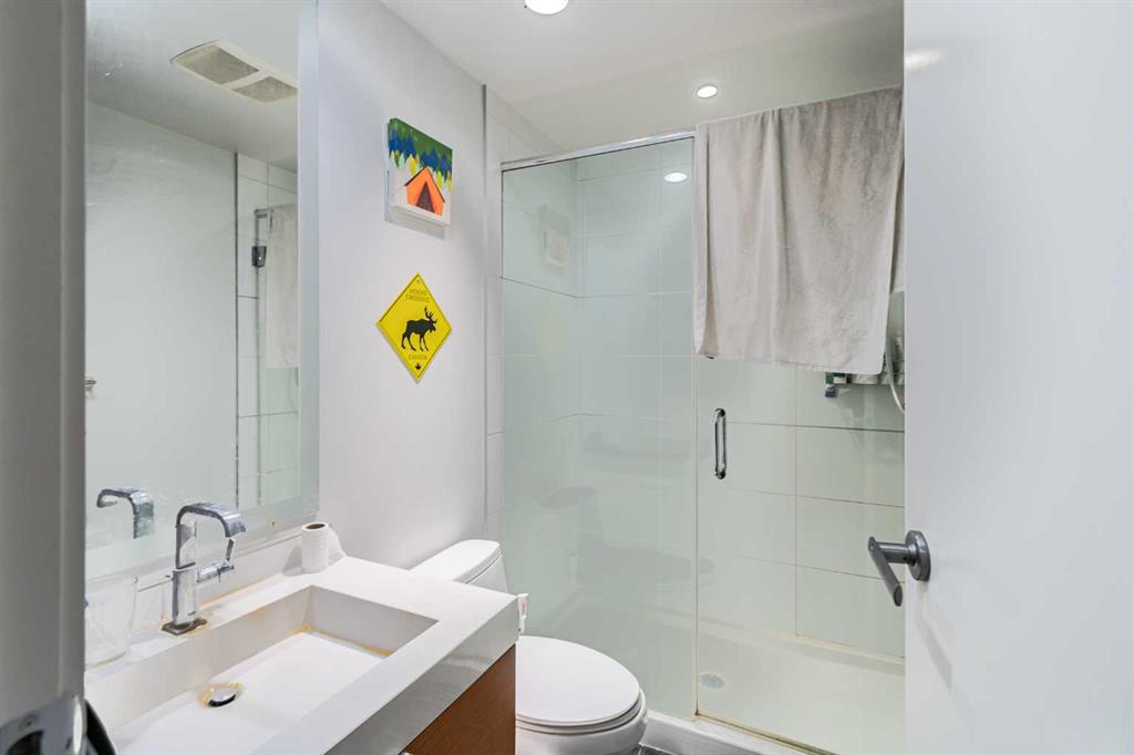 Fully furnished modern 1 bed/1bath condo unit on the \"Flats Tower\" of The Prestigious Waterfront Condo, Calgary\'s upscale Downtown neighborhood. Open concept floor plan, 9\' ceilings, floor to ceiling windows. End unit & balcony is exposed to the view of the beautiful courtyard. Kitchen is fully equipped with high-end stainless steel appliances. Quartz central island & countertop. Full heights cabinetry. Bedroom has built-in head board, double bed-frame & 2 night tables. In-suite laundry & air conditioned. Unit includes an assigned parking stall & a storage locker. Enjoy living in a resort style building with superior amenities : concierge service, fitness facilities, hot tub, sauna, movie theatre, social lounge, outdoor garden patio, visitor parking & car wash. Move in & enjoy the lifestyle of a waterfront community along the Bow River & Princess Island Park. Walking distance to Downtown, Chinatown, East Village & Eau Claire Market, shops & restaurants. Bike or walk along the water path. Perfect for first time buyers or as an investment property. A great property to consider.