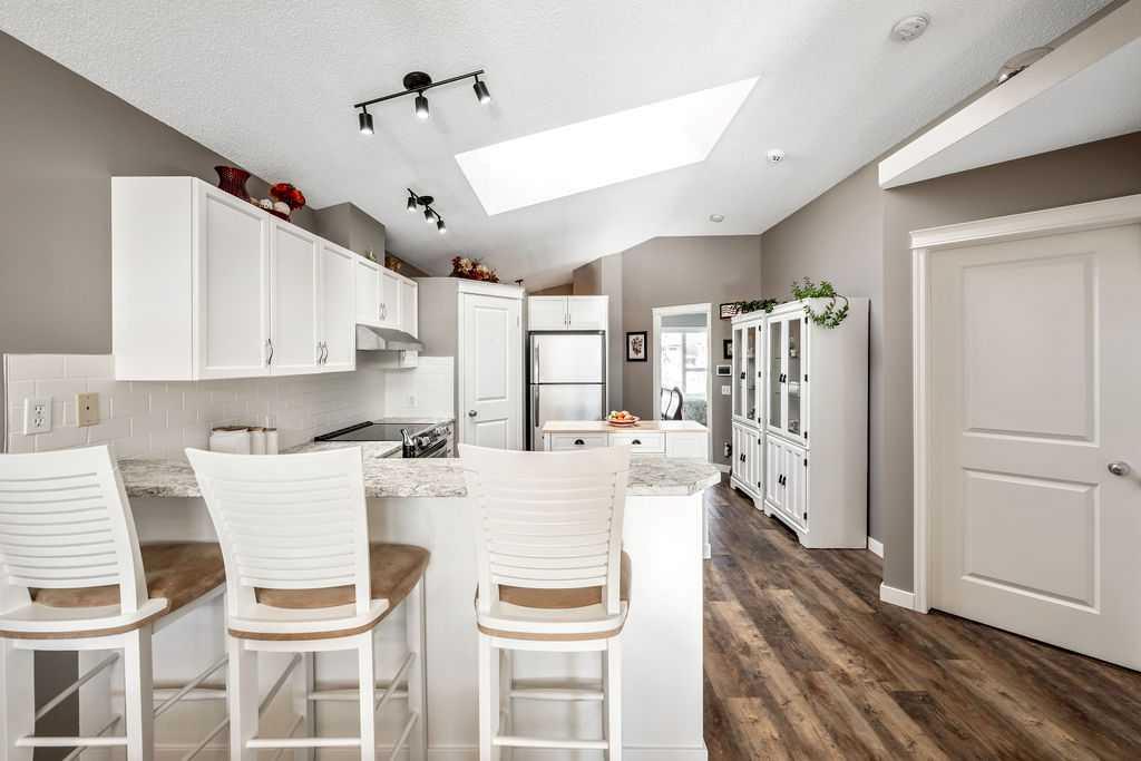 Absolutely stunning 4-bedroom, 2-bath home located in the highly desirable community of McKenzie Towne. This beautifully updated property is truly turnkey and ready for its next owner. As you enter, you’re greeted by a bright and welcoming front entry with impressive vaulted ceilings and an open, airy layout that fills the home with natural light. The thoughtful floor plan offers easy accessibility, making it ideal for a growing family or anyone looking for fewer stairs and comfortable single-level living. The spacious kitchen has been tastefully updated with new countertops, a newer range and hood fan, freshly painted cabinets with modern hardware, and the addition of a moveable island and cupboard unit for extra functionality and flexibility. The open-concept design flows seamlessly into the living and dining areas—perfect for entertaining guests or enjoying cozy family dinners. Above the kitchen, a skylight allows ample natural light to pour into the home. Throughout the main level, both the front and back windows have been replaced, and the back door has been widened to 36 inches with a sidelight for added brightness. New vinyl plank flooring, updated baseboards, and all-new interior doors complete the fresh, modern look. The primary bedroom is conveniently located at the front of the home, with a second bedroom nearby that’s ideal for guests or a home office. The main bathroom has been completely updated with a new vanity, toilet, and a reconfigured shower replacing the original tub. The upstairs bathroom also features in-floor heating. The fully finished basement offers two additional bedrooms, a full 4-piece bathroom, and a large storage area—perfect for a deep freeze or seasonal items. The cozy family room features a beautifully redesigned gas fireplace with a stone front, refined shape, and elegant mantle, creating a warm focal point for the space. Outside, you’ll find a large one-tier deck that has been recently levelled and upgraded with widened stairs set on concrete blocks—ideal for summer gatherings or quiet mornings with coffee. The backyard has been newly grassed and fenced, with lattice detailing around the deck, raised vegetable beds, and a variety of mature plants. A storage shed provides extra space for tools and seasonal decor, while the front yard showcases new brick borders outlining the flower beds for great curb appeal. Additional upgrades include new faucets and light fixtures throughout the home—including both bathrooms, the kitchen, dining area, and front entry—as well as new blinds on both levels. This McKenzie Towne gem offers a perfect blend of comfort, style, and functionality, close to parks, schools, shopping, and restaurants. Don’t miss your chance to call this beautifully updated home yours!