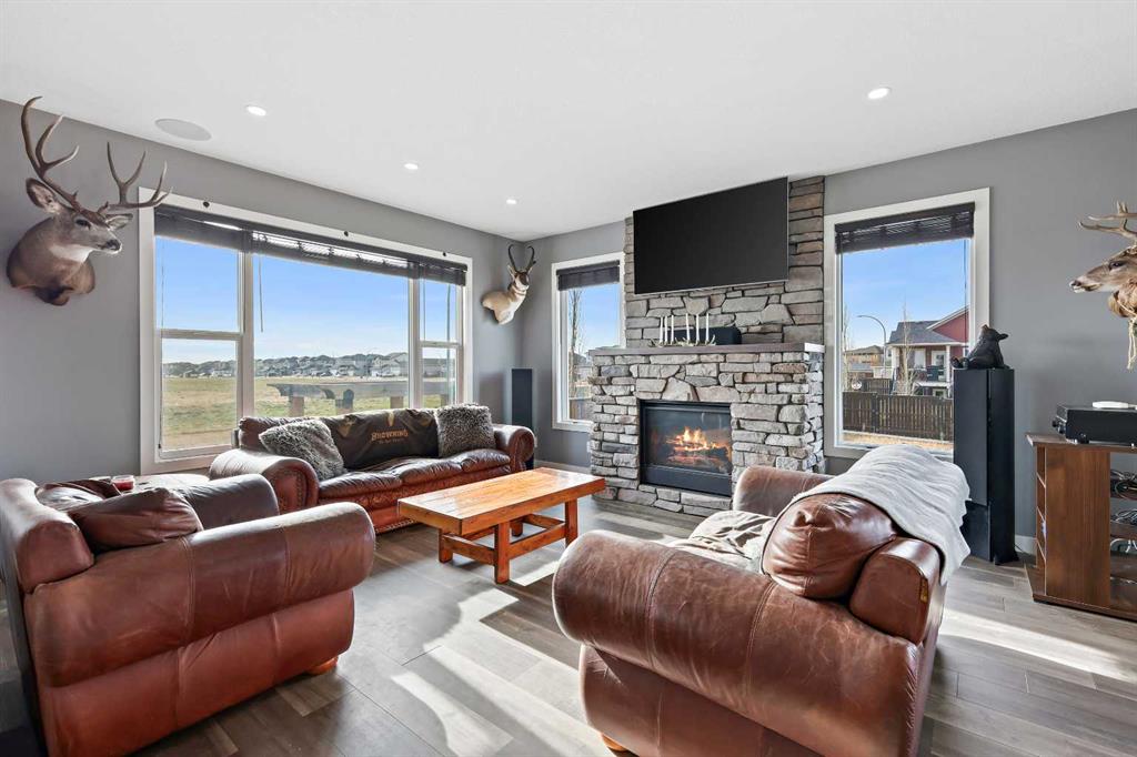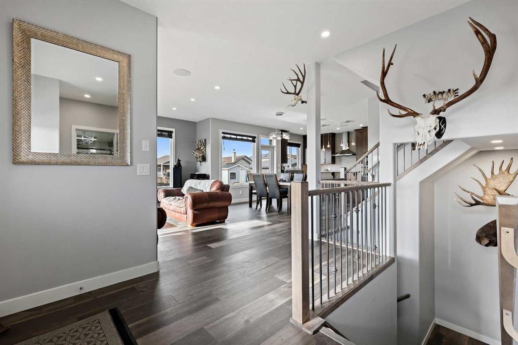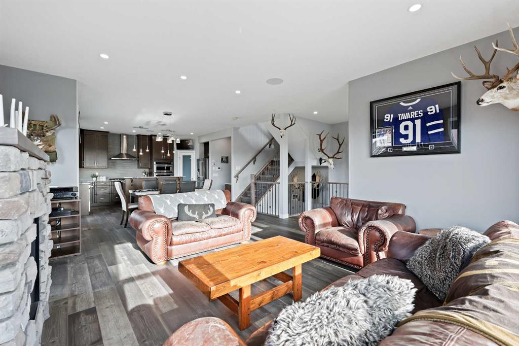 Welcome to 5 Hanson Lane – The Home That Truly Has It All! If you’re searching for a home that offers style, quality, and comfort, this custom-built property is the perfect fit. Designed and constructed by the homeowner with top-of-the-line finishes and upgraded electrical, this stunning home is move-in ready and waiting for your personal touch. Situated on a massive corner lot with no neighbors in front, you can enjoy peaceful mornings on your front porch as the sun rises. The oversized heated triple-car garage is ready for your projects — complete with in-floor heating (boiler required), welder wiring, and extra rebar in the slab for added stability. The west-facing backyard is a blank canvas, ready for your dream outdoor space. The steel-framed back deck is maintenance-free and ready for composite decking in the color of your choice. With RV parking in the front and a low-maintenance yard, this home offers both convenience and functionality. Inside, you’ll love the open-concept main floor featuring a gorgeous stone fireplace in the living room. The kitchen is a baker’s delight, complete with double wall ovens and warming drawer, gas range, wine fridge, all top-of-the-line KitchenAid stainless steel appliances. Under-cabinet lighting and updated fixtures enhance the sleek, modern design. Upstairs, you’ll find a bonus room, two spacious bedrooms, a laundry room with wash sink, and the luxurious primary suite. The primary retreat features a spa-inspired ensuite with double vanity, large walk-in shower, soaker tub, and private toilet area, as well as a massive walk-in closet and private west-facing balcony — perfect for watching sunsets or summer rain showers. The unfinished basement offers 9’ ceilings, large windows, and rough-ins for a wet bar — a true blank slate ready for your vision. It also includes in-floor heating (boiler required), reinforced concrete, and extra rebar for superior durability. Additional features include: Luxury vinyl plank flooring throughout, Photocell ambient stair lighting, Built-in speaker system (zone-controlled via app) in house, deck, and garage, 2024 hot water tank, Home security system. Don’t miss your chance to own this incredible property in the heart of Langdon. Book your private showing today with your favorite Realtor or join us this weekend for the open house!