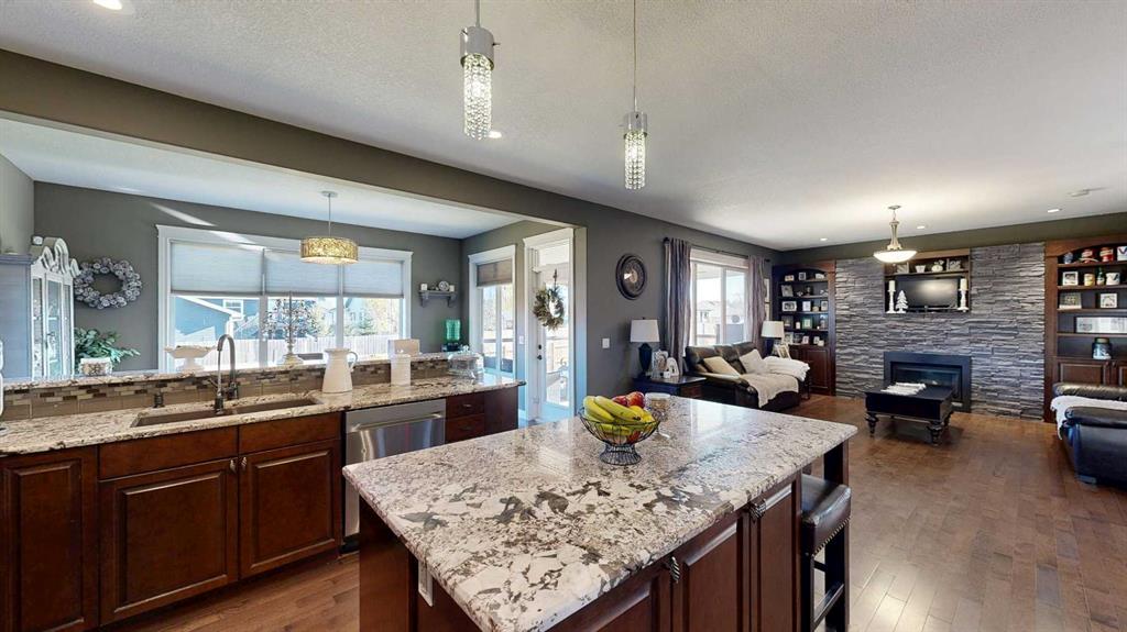 Step inside to a grand foyer that sets the tone for the quality and craftsmanship throughout. The open-concept main floor features a gorgeous kitchen complete with a double wall oven, custom walk-in pantry with built-in organizers, large island, and abundant counter space—perfect for entertaining and family gatherings.