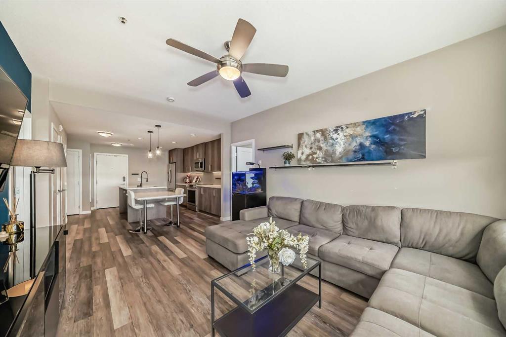 Welcome to Vivace North, where modern living meets city convenience! Located in the highly desirable community of West Springs, this stunning condo is the perfect spot for those seeking the best of both worlds. Situated just a stone\'s throw away from Calgary\'s hottest restaurants and pubs, including Mercato West, Vin Room, Blanco, Fergus & Bix, Una Pizza, 722, and many more, you\'ll never have to travel far to enjoy a night out. And with easy access to grocery stores, (Co-op, No frills) shops, and local schools, and with only a fifteen-minute drive to downtown Calgary. The mountains are just a short drive away, providing endless opportunities for hiking, skiing, and other outdoor activities. A large foyer opens to a spacious, open plan that places the kitchen in the center of the living and cooking areas, ideal for entertaining. Featuring knockdown ceilings, LVP flooring, stainless steel appliances, eating bar, modern quartz counters, extended height cabinets with under cabinet lighting, This home has two bedrooms one with a jack and jill bathroom sharing access with the second bedroom and the common area, whereas the master bedroom is accompanied by an executive ensuite with a spacious walk in shower, walk through closets both bedrooms have their own private balcony. This unit comes with in-suite laundry, a storage locker, bike locker, and tandem double parking stalls. Don\'t miss your chance to experience luxury living in one of Calgary\'s most desirable neighborhoods. Call your favorite agent today to book your private viewing of this stunning condo at Vivace North!