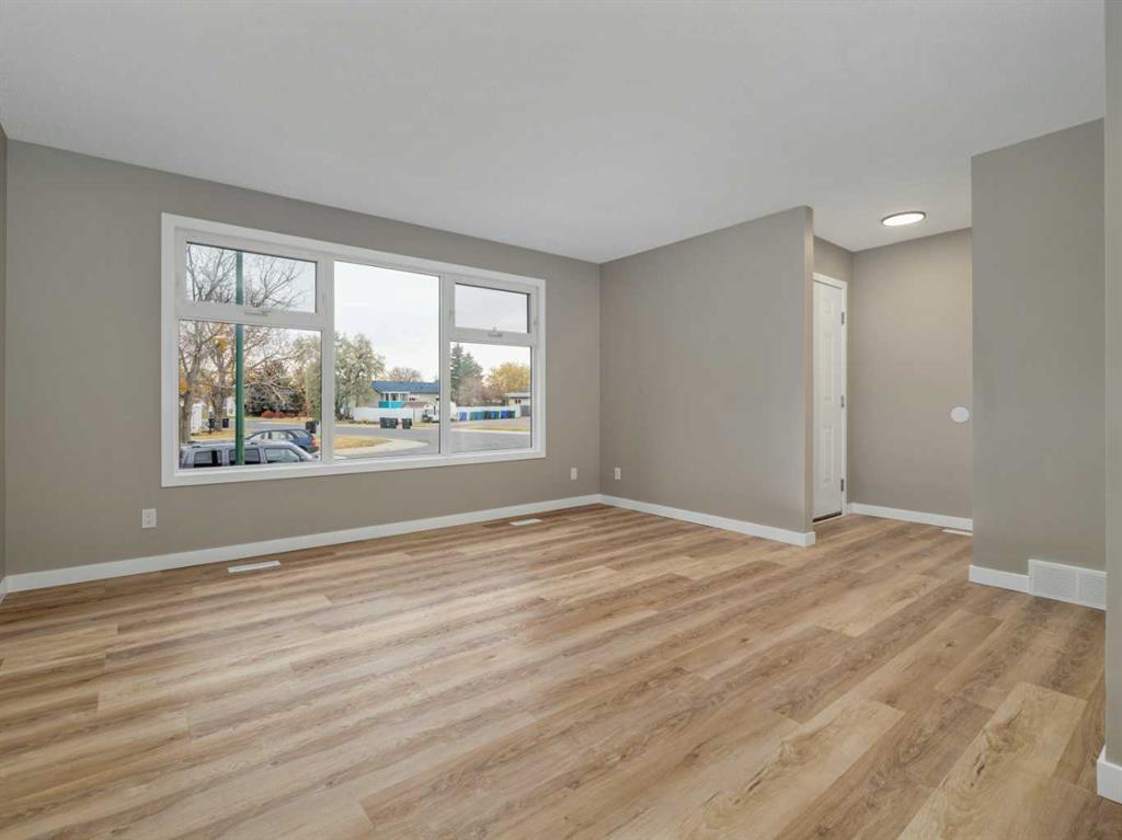 Newly renovated main floor on this 3 bedroom bungalow half-duplex in West Lethbridge! Brand new vinyl plank floors. New Paint. New kitchen including cupboards, counters, sink, faucet, & stainless steel appliances. New lighting on main. New bathroom and new plumbing fixtures. Large yard. Home has vinyl windows on main too. There is also a side entry to the undeveloped basement. New laundry machines purchased and ready to be hooked up. Plenty of parking beyond the fence on the alley. Perfect starter or downsize home to enjoy now and build some equity when you finish the basement in the future!