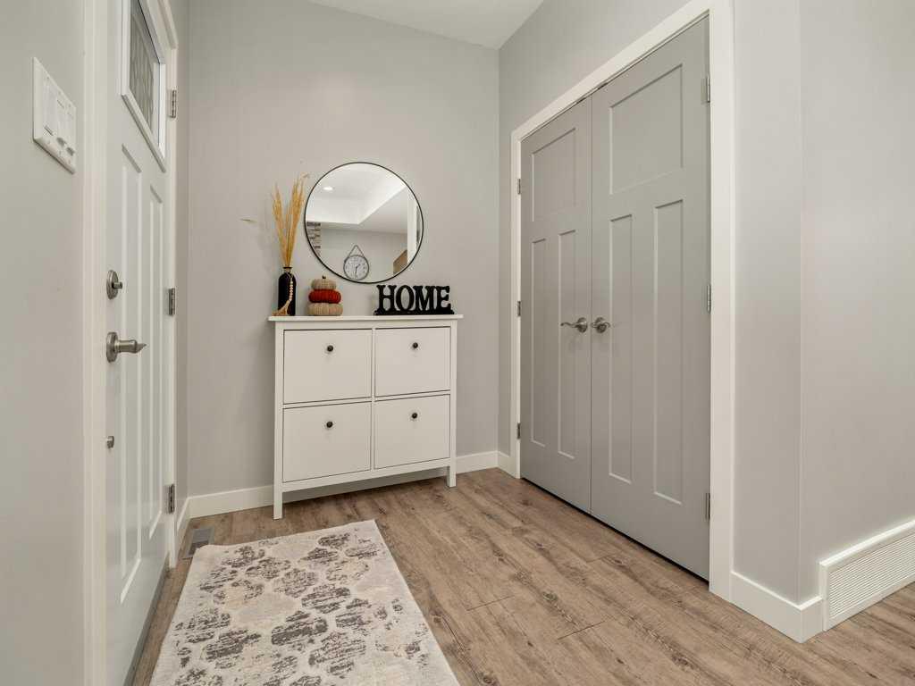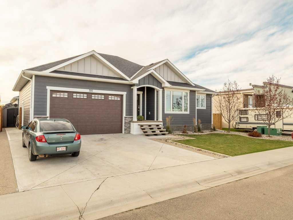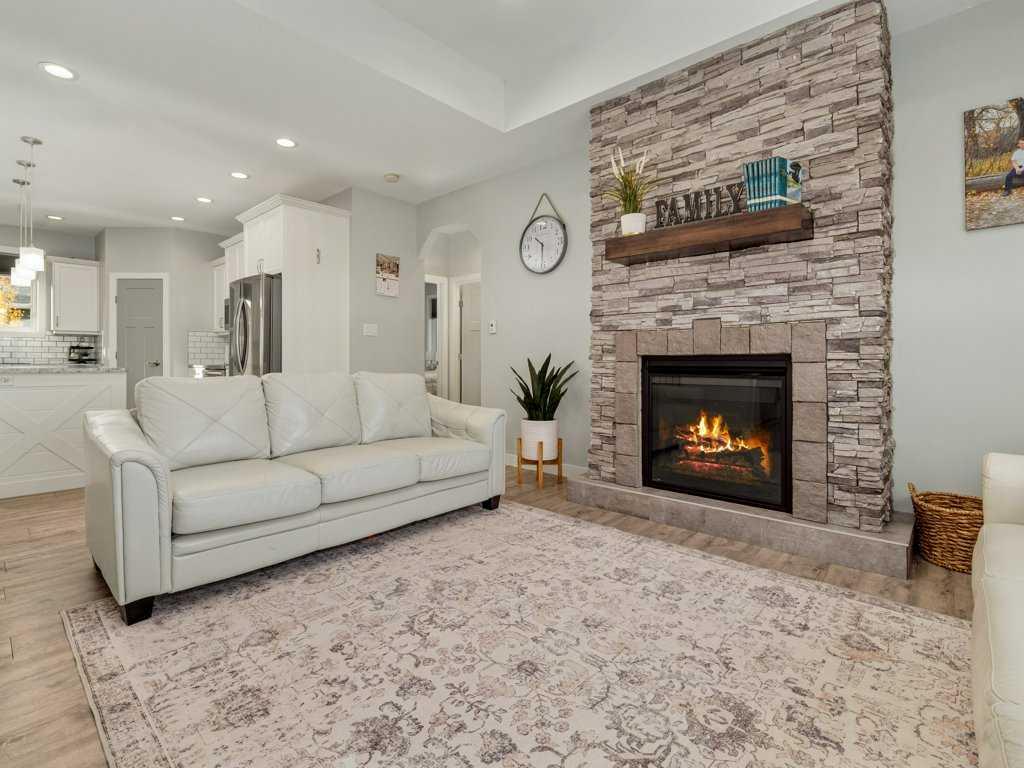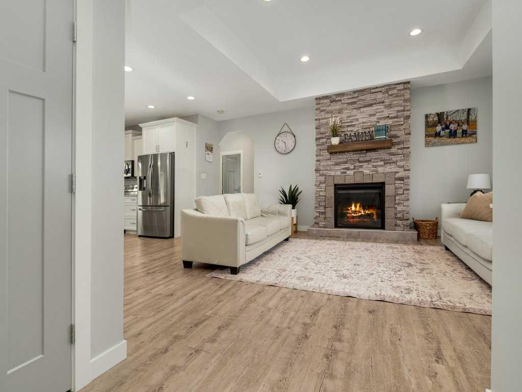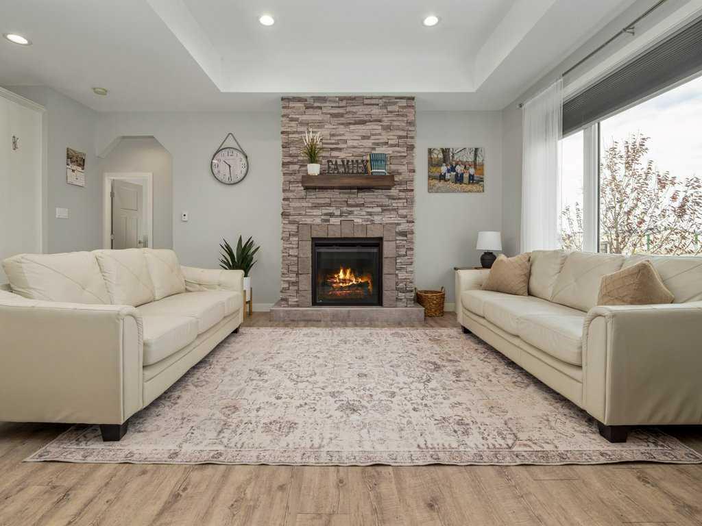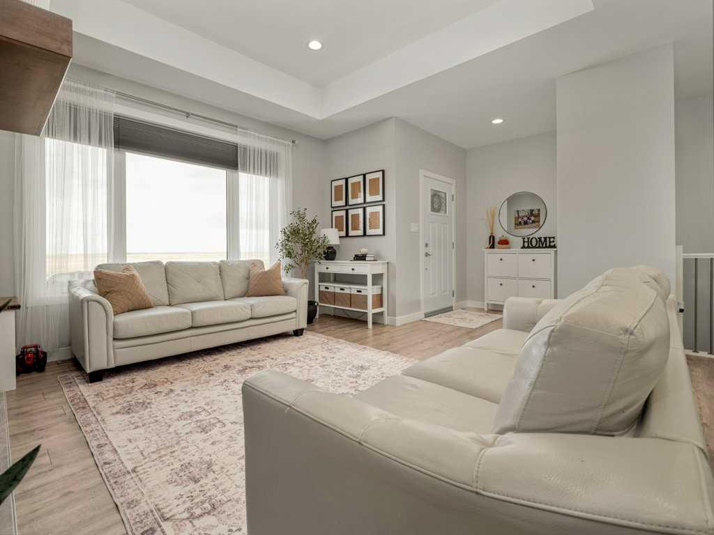 Just 25-30 minutes from Lethbridge, this one-of-a-kind home offers small-town charm with modern comfort. The bright open floor plan features a tray ceiling, pot lights, and a gas fireplace with beautiful stonework. The white kitchen includes a large island, stainless appliances, and a durable black sink. Enjoy the convenience of main floor laundry, perfect for seniors or anyone who prefers single-level living. The main floor also includes a spacious primary suite with walk-in closet and ensuite featuring a glass shower and dual sinks, plus a second bedroom and full bath. Downstairs offers a huge family room, three bedrooms, and a 3-piece bath. Additional features include central A/C, a heated double garage, textured concrete driveway and underground sprinklers. Don’t miss this beautiful family home in a welcoming community!