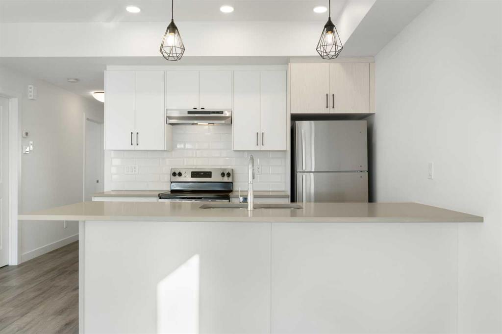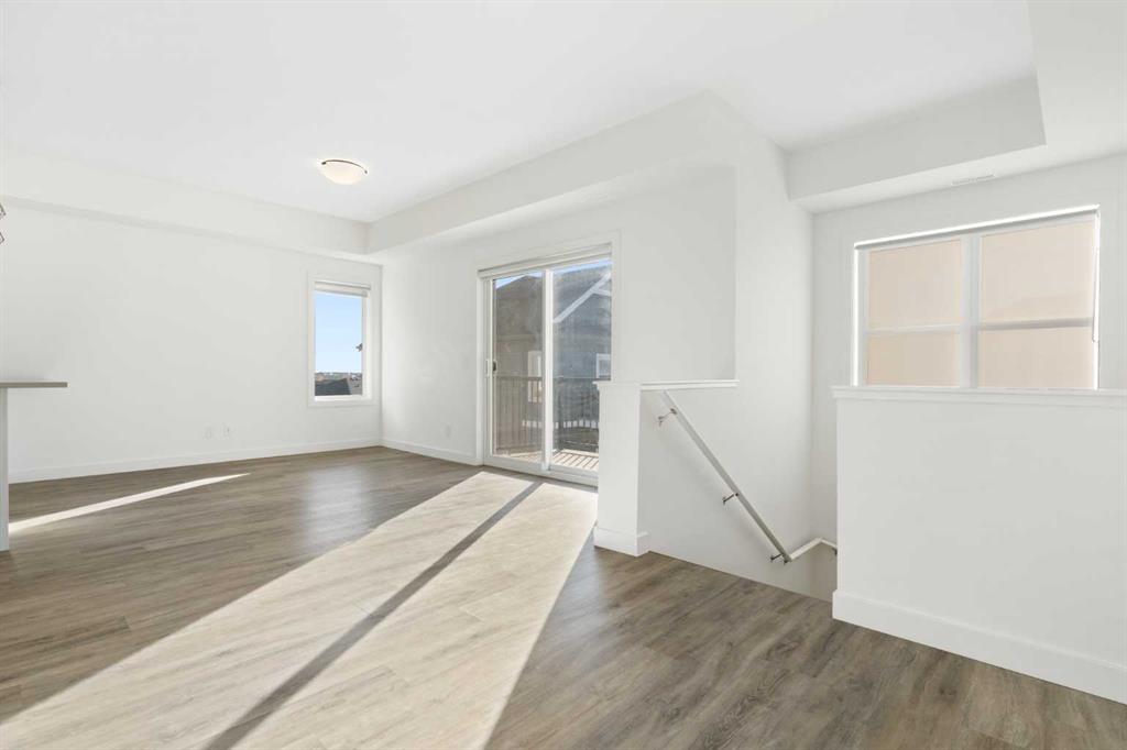 Welcome to The Jasper, a stunning top-floor stacked townhouse that offers the perfect blend of style and function. This unit features over 1250 sq ft of thoughtfully designed living space, with most of the layout conveniently situated on a single level. Step inside and up to the main floor and you will discover an open-concept living area with a full kitchen that\'s a home chef\'s dream. The kitchen boasts elegant quartz countertops, soft-close drawers, and stylish two-tone cabinets highlighted by pendant lighting. An adjacent, flexible space is perfect for a spacious dining area or a home office. This home has two large bedrooms and two full bathrooms. The primary bedroom is a true retreat, featuring a massive walk-in closet and a luxurious 4-piece ensuite. A spacious laundry room adds to the convenience.This unique floorplan is designed to feel like a modern apartment but with the added benefits of a main floor storage/flex area and direct access to an oversized, extended single-car garage.This home is perfectly situated to offer the best of both convenience and community. It\'s located right next to a future school site, with transit options directly at your doorstep for effortless commuting. Enjoy a short two-minute walk to Bow Valley High School, and a quick five-minute trip to the Spray Lakes Sports Centre for all your recreational needs. For bigger city amenities, you\'re only 20 minutes from South Calgary, and the mountains are within easy reach, with Canmore just a 40-minute drive away.