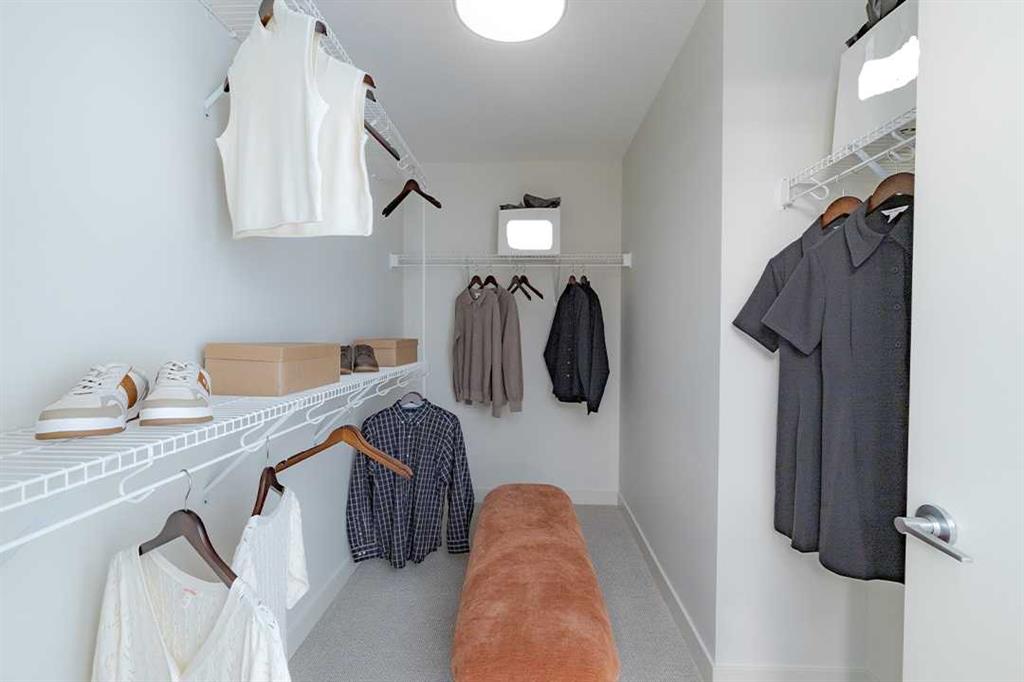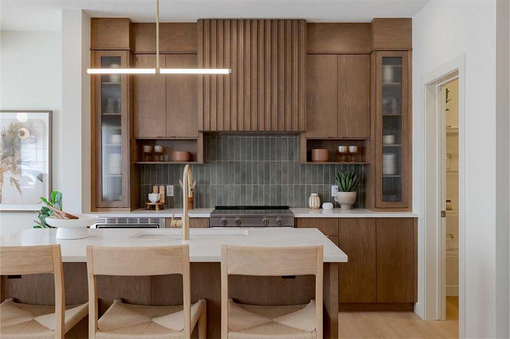 The Edith by Shane Homes: a customizable pre-construction home in Ambleridge designed for modern living. This spacious layout features a main floor bedroom and full bathroom, ideal for guests. The Super Kitchen and Spice Kitchen options expand the square footage and include premium upgrades such as a chimney hoodfan and gas cooktop. Built with a 9\' basement foundation, rough-ins, and an AC allowance, this home offers comfort and future flexibility. Elevation A showcases striking curb appeal. Experience the quality and craftsmanship of Shane Homes. Photos are representative.
