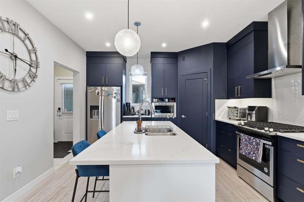 Welcome to your dream home in the sought-after community of Chelsea, Chestermere. This stunning property offers the perfect blend of modern design and everyday comfort with an inviting open-concept main floor featuring a bright living room, spacious dining area, and upgraded kitchen with quartz countertops and elegant finishes. A convenient powder room and access to a large deck make this level ideal for both family living and entertaining guests. Upstairs, the primary bedroom serves as a private retreat with a luxurious 5-piece ensuite and walk-in closet, along with two additional bedrooms, a full bathroom, and upper-level laundry for added convenience. Enjoy outdoor living in the beautifully landscaped and fully fenced backyard with a large deck and plenty of space for gatherings. The double detached garage features doors on both sides, creating a versatile area perfect for summer entertaining or extra parking. Located close to schools, parks, shopping, and Chestermere Lake, this home truly offers the perfect combination of style, comfort, and location.