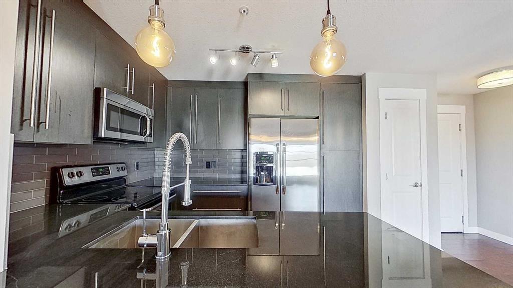 Lifestyle at Mahogany West Beach with stunning lake views and relaxing atmosphere. Experience magnificent lake views of Mahogany West Beach and the shimmering water from every space within this exceptional condo, including the inviting balcony. This unique residence is a true sanctuary, offering relaxation after a long day and providing a welcoming atmosphere for friends and guests. Upon entering, you’ll find yourself leaving all stress behind, embraced by the tranquil surroundings. Comfort across all seasons. During the winter months, a soft cork floor adds warmth and comfort, allowing you to enjoy the peaceful lake scenery while sipping a hot cup of tea. As summer arrives, you can unwind on the balcony, taking in the spectacular beach view and enjoying the refreshing afternoon breeze. The condo’s open concept design features two spacious bedrooms, two bathrooms, and a versatile study, all within just under 900 square feet. Granite countertops in the modern kitchen and both bathrooms lend an air of elegance, making this one of the most distinctive condos in the pet-friendly building. Enjoy the convenience of underground parking, in-suite laundry, and a personal storage locker. With prime location and outdoor activities, living here feels like being part of a private beach club, with exclusive amenities and a relaxed vibe. The condo is ideally located just a four-minute walk from the beach and the scenic lake trail. Paddle boarding, skating, and lakeside lounging are all part of daily life, making this an enviable place to call home. If your day is not over yet, walk three blocks to some of the best restaurants and pubs in south Calgary. The only thing missing from this picture-perfect lifestyle is you! Welcome home.