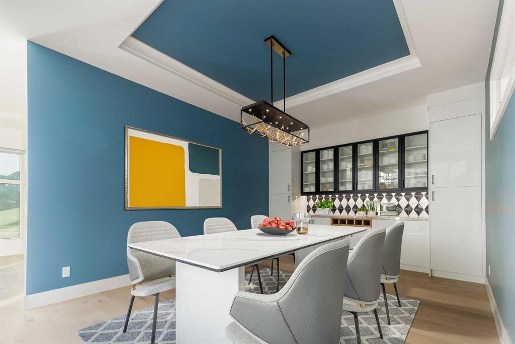 OPEN HOUSE SAT NOV 1ST 3PM-5PM & SUN NOV 2ND 12PM-2PM. This modern estate in Calgary’s prestigious Watermark community showcases precision construction, advanced systems, and contemporary design. A heated four-car garage features a durable epoxy floor, radiant in-floor and gas heating, a half bath, and ample space for a workshop or bench setup. Inside, a residential elevator provides full accessibility across all levels, while engineered hardwood flooring, custom millwork, and an open-riser glass staircase define the home’s architectural character. The great room features a tray ceiling with recessed lighting and a linear gas fireplace framed in charcoal tile, blending form and function. The chef’s kitchen is anchored by dual onyx-clad islands, gloss-white cabinetry, brass fixtures, and Jenn-Air professional appliances, complemented by a full prep kitchen with induction cooktop, secondary refrigerator, and dishwasher for seamless entertaining. The formal dining area includes built-in cabinetry, crown detailing, and geometric backsplash, while a front sitting room with a wood-accent fireplace, glass-enclosed office, and powder room with onyx counter and brass accents complete the main level. A well-appointed mudroom offers full-height storage, marbled tile, and a built-in bench for easy transitions. Upstairs, the primary suite includes a private balcony with mountain views, dual walk-in closets, and a spa ensuite with heated floors, dual vanities, steam shower with dual rain heads, and a deep soaker tub. Three additional bedrooms feature walk-in closets, with both Jack & Jill and private ensuite layouts. The upper level also offers a loft, study nook, and laundry room with quartz counters, extending to an outdoor patio finished with glass railings and synthetic turf. The lower level is designed for recreation and fitness, with a quartz wet bar, brass fixtures, beverage fridge, custom shelving, media area, mirrored gym, and two bedrooms with walk-in closets and full baths. Finishes include luxury vinyl plank, recessed lighting, and marbled tile throughout. Mechanical highlights feature radiant in-floor heating throughout the lower level, high-efficiency HVAC, smart lighting controls, and an integrated sound system — combining craftsmanship, durability, and performance in one of Watermark’s most technically refined residences.